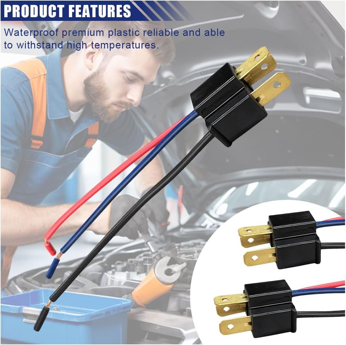 2PCS Wiring Harness Headlight Connector, 3 Wire Way Female Power Plug-Male Head