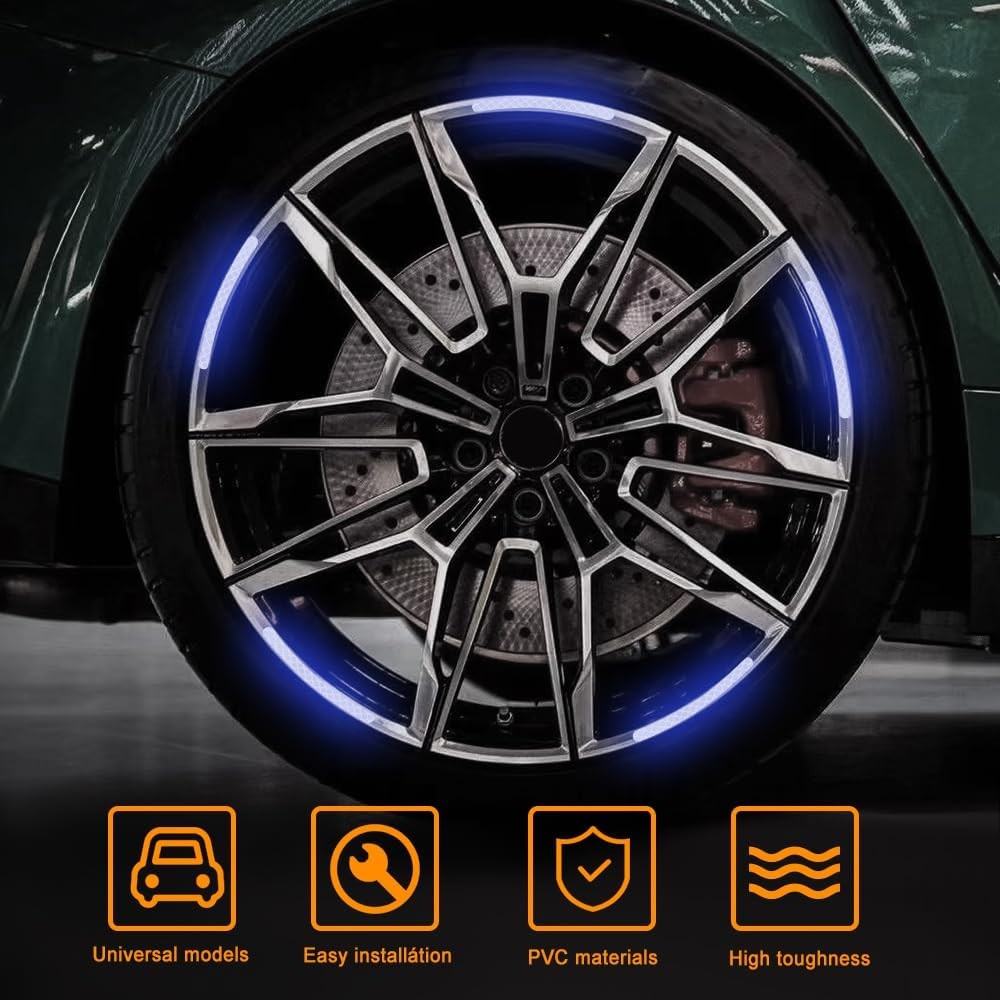 20PCS Reflective Car Wheel Decorative Stripe Stickers, Wheel Rim Decal, Car Blue