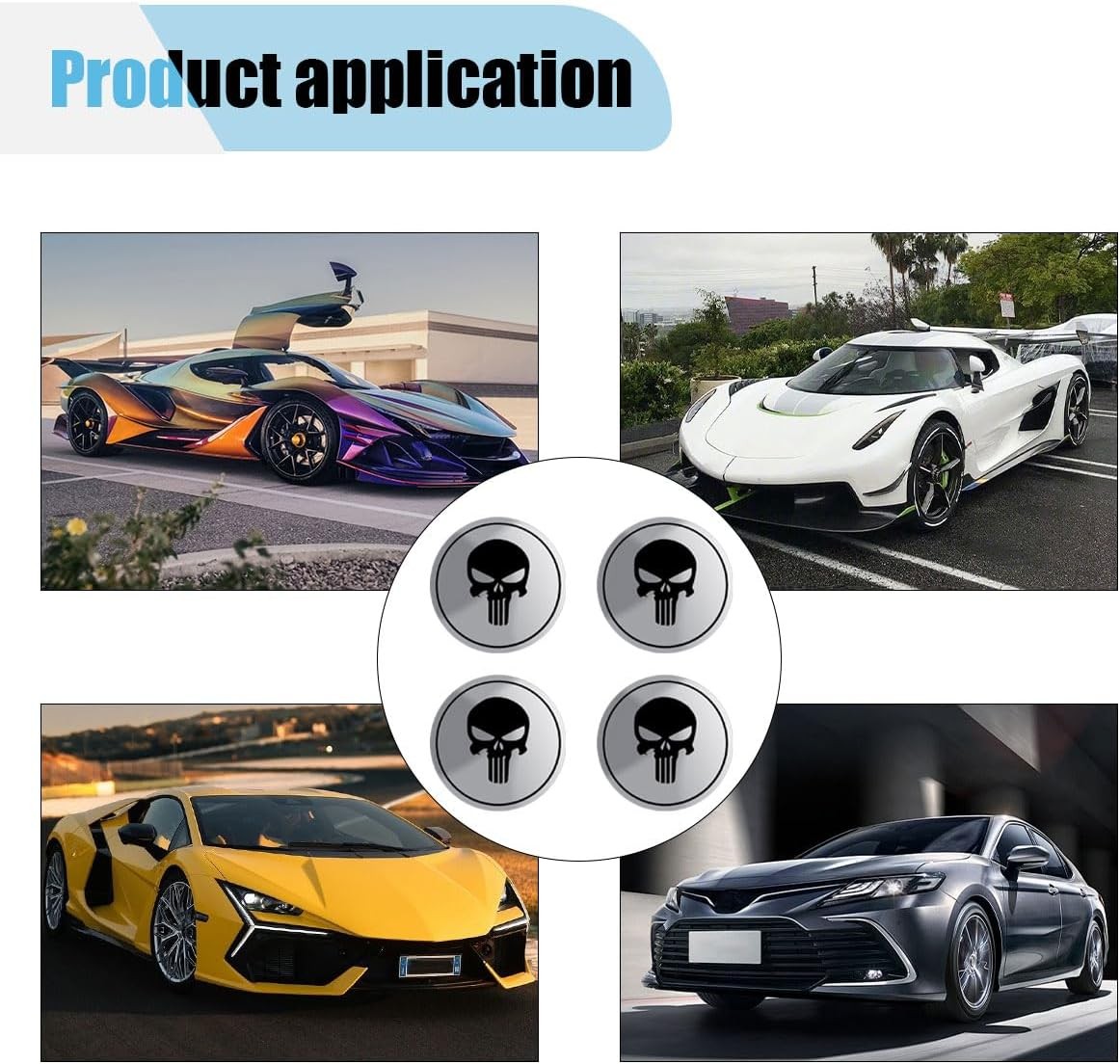 • 4PCS Car Wheel Hub Center Cap Sticker, 2.2" Personalized Metal Wheel Silver