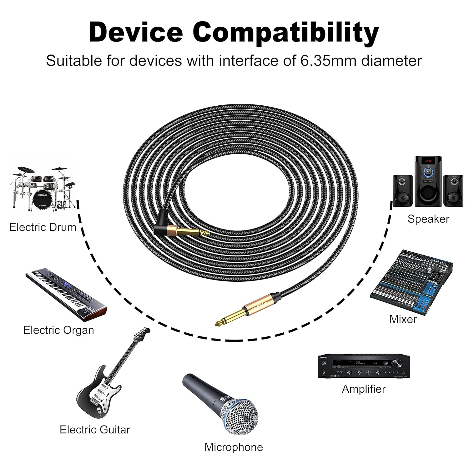 как выглядит 20Ft Electric Guitar Cord Instruments AMP Cable 1/4 Inch Right Angle Cord фото