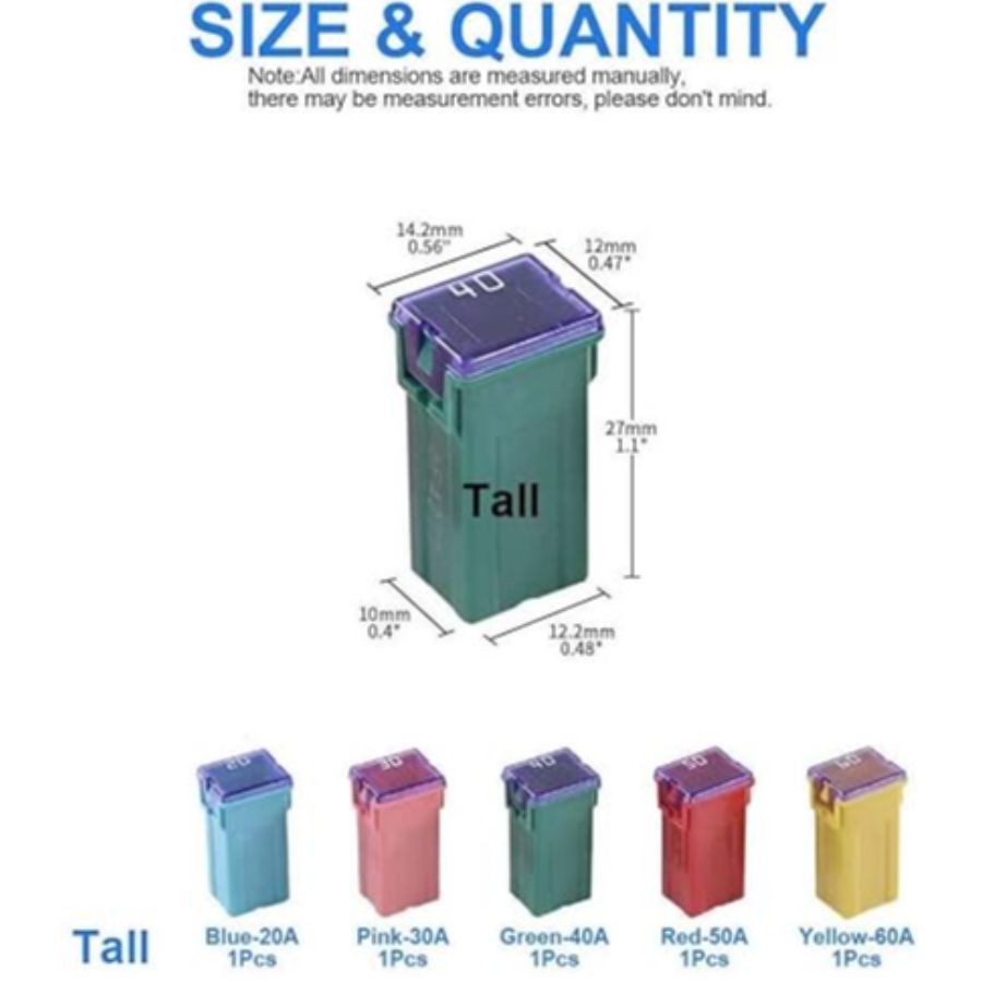 10 Pc Automotive Tall Profile JCASE Fuse 40 Amp Fuse Kit for Pickup 40 Amp