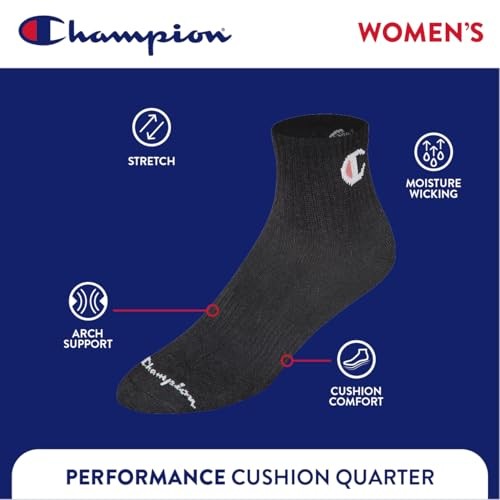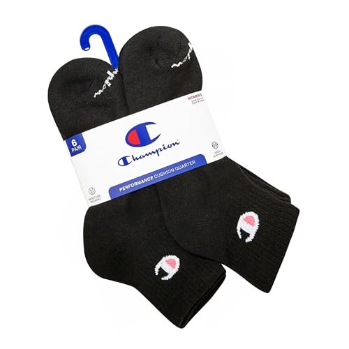 Women's Quarter Socks 6-pack Cushioned Athletic Socks 5-9 Black - Toe Logo