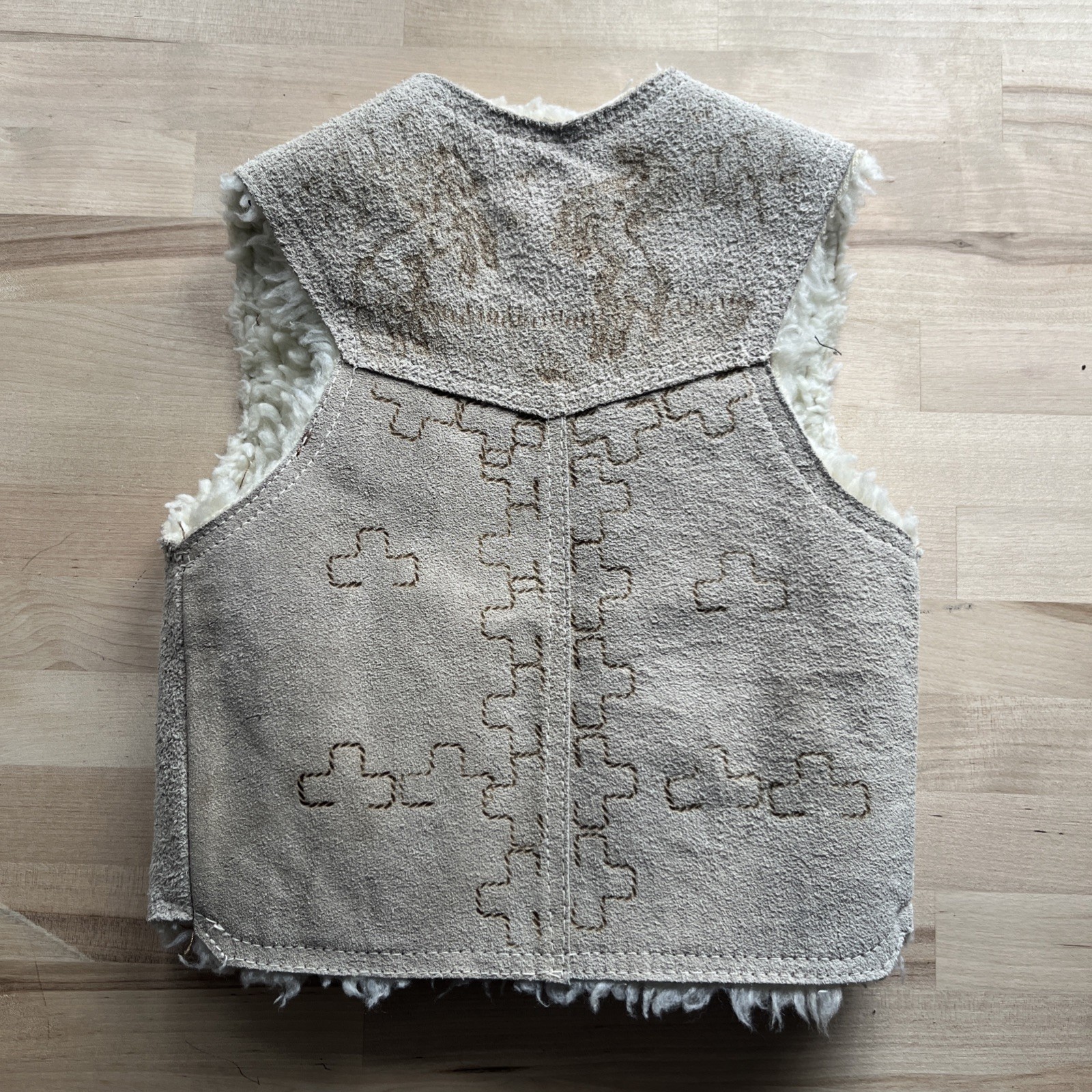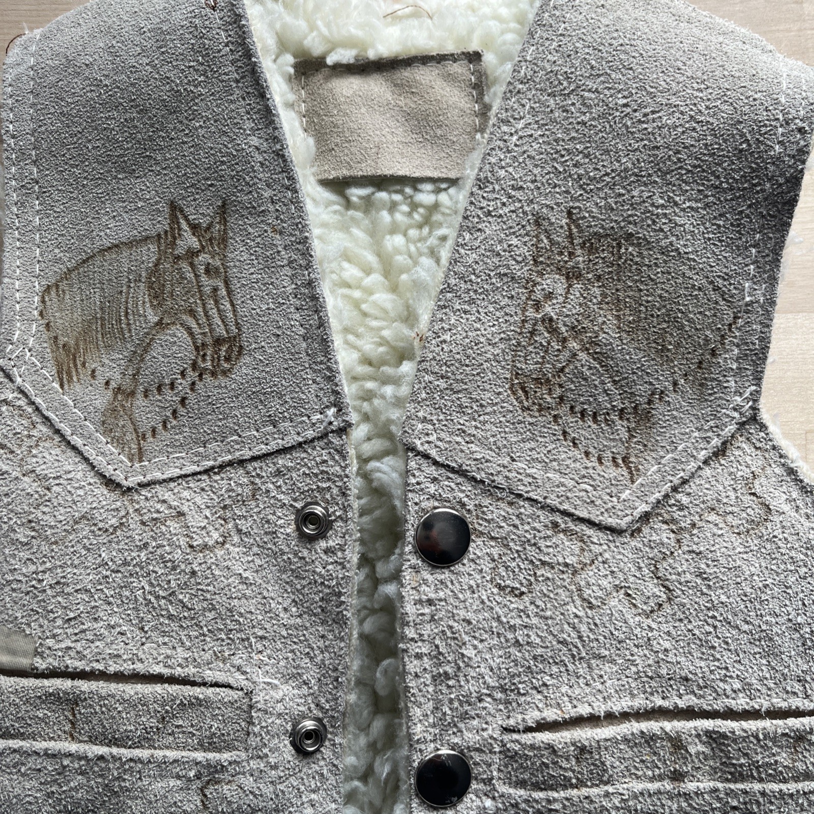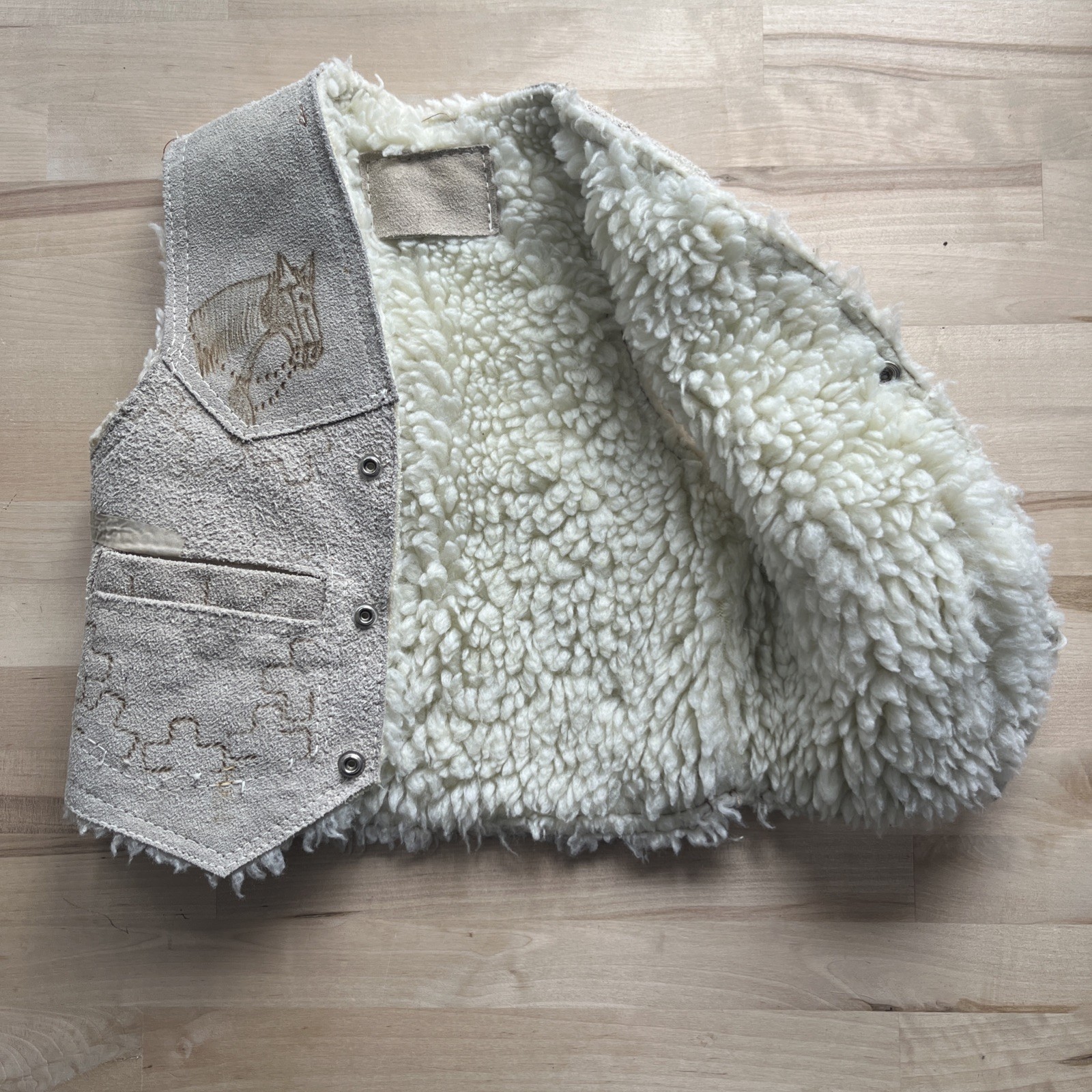 Toddler Sherpa Lined Suede Leather Vest Horse Print Western Cowboy 3T