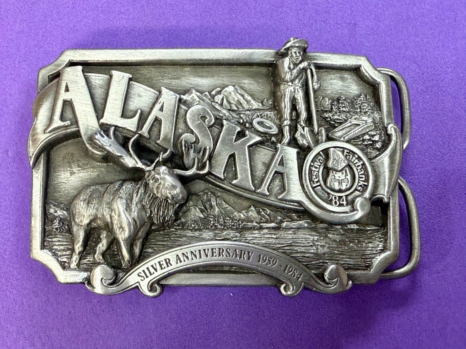 Alaska State Silver Anniversary Festival Vintage 1984 Siskiyou Belt Buckle