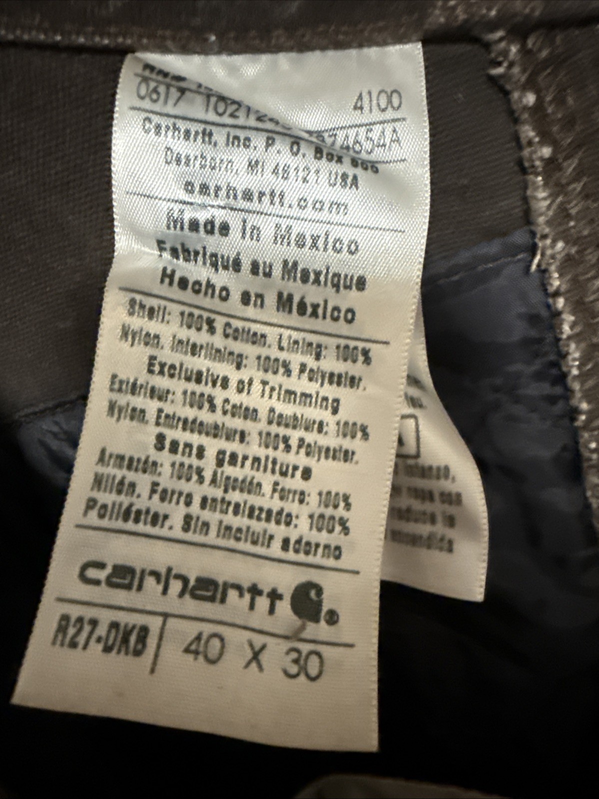 Carhartt Sandstone Dark Brown Quilted Bib-Overalls, Double Knee 40 30