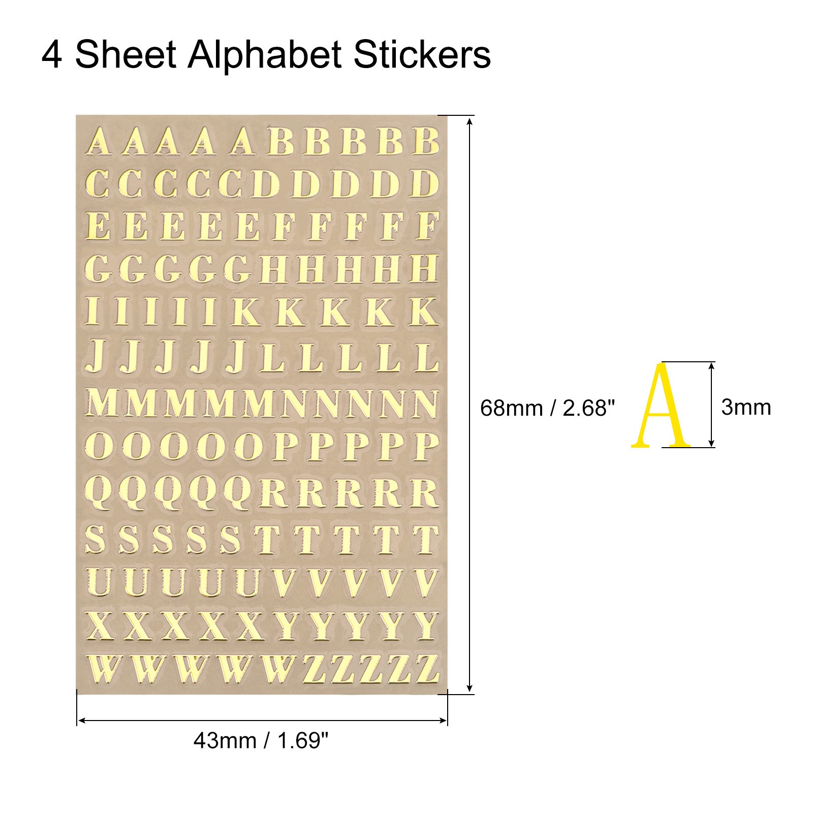как выглядит 4 Sheet Letter Resin Stickers Mini Glitter Uppercase Self Adhesive Gold 3mm High фото