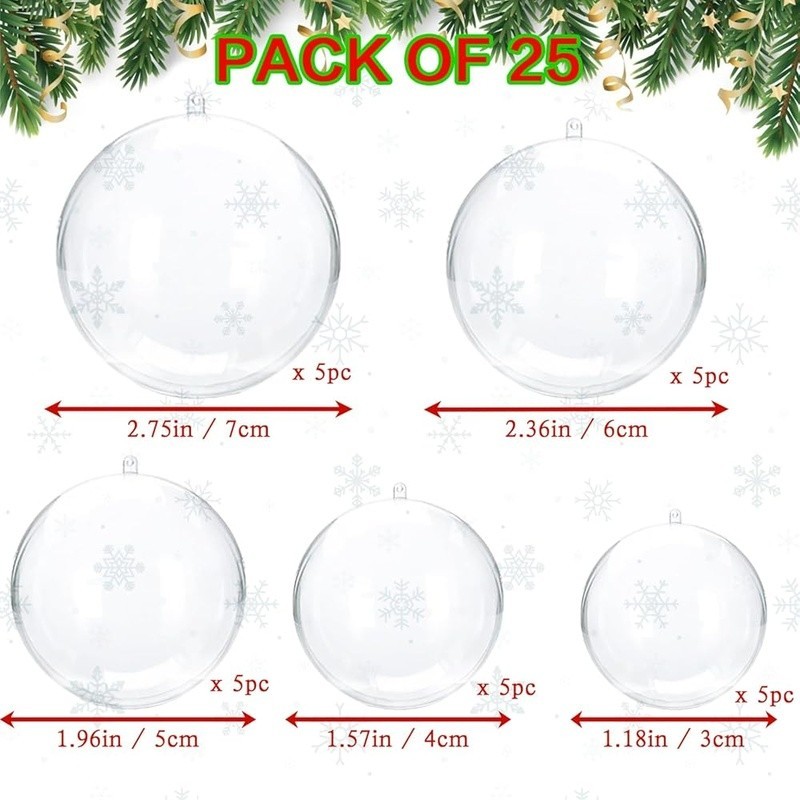 Fillable Christmas Ornaments Balls Clear Plastic DIY Craft Hanging Decor 25 Pack