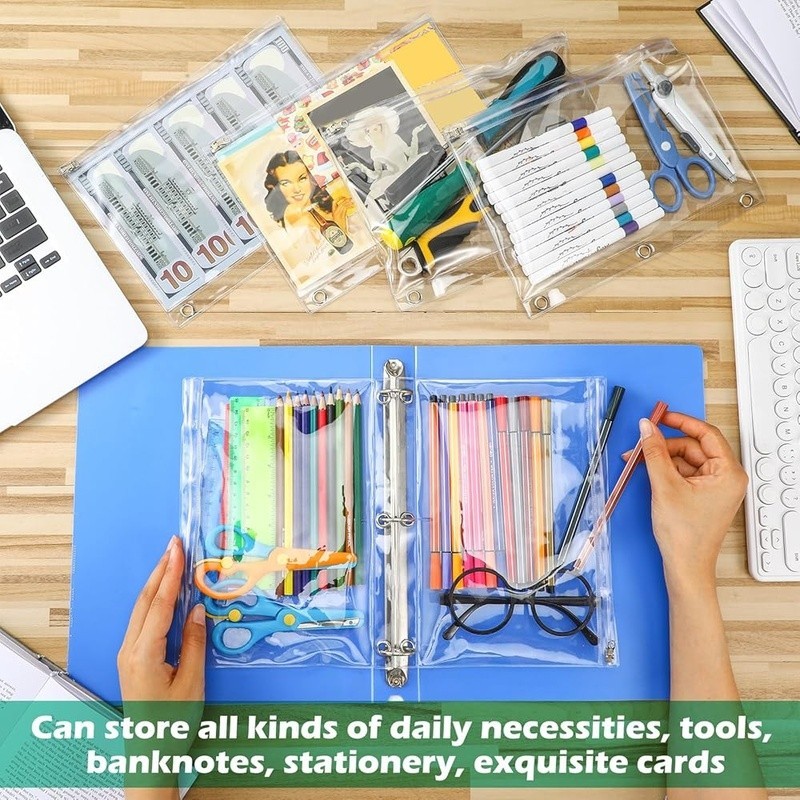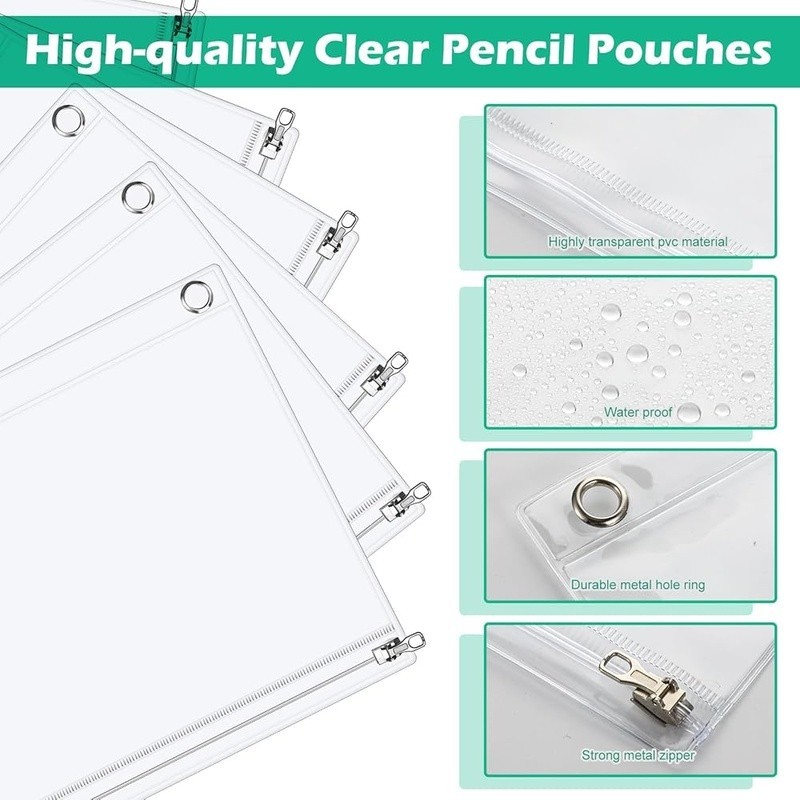 Durable Clear Pencil Pouches 3 Ring Binder Waterproof Zippered Storage Case New