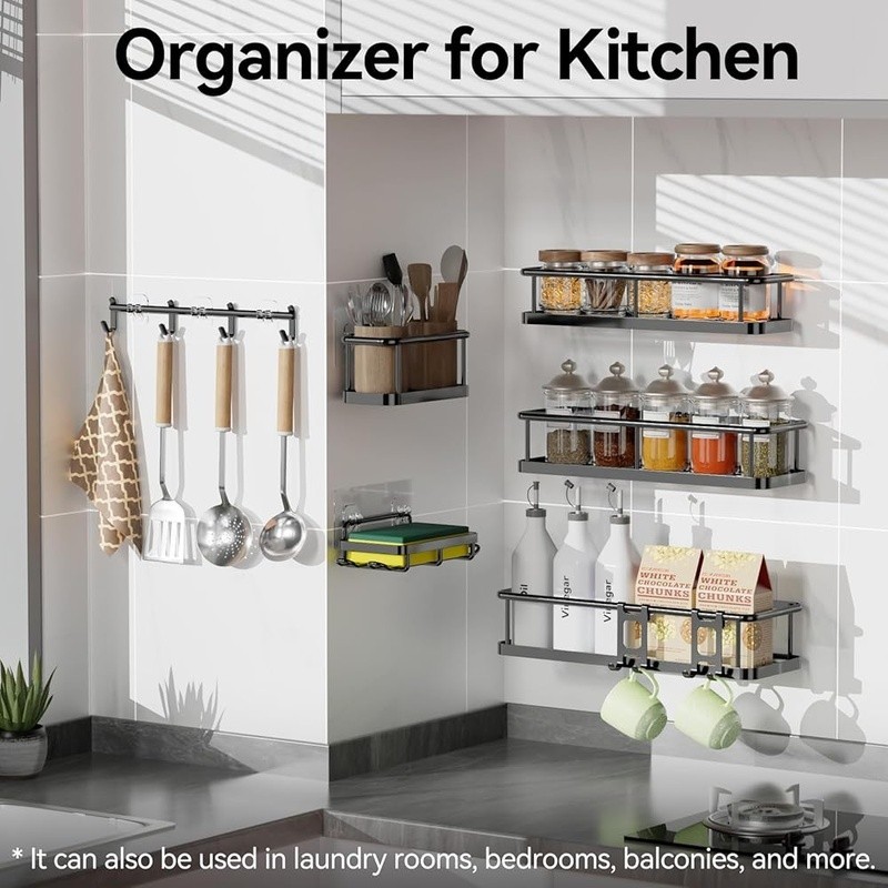 Shower Caddy Organizer Set Rustproof Adhesive Hooks Bathroom Storage 6 Pieces US