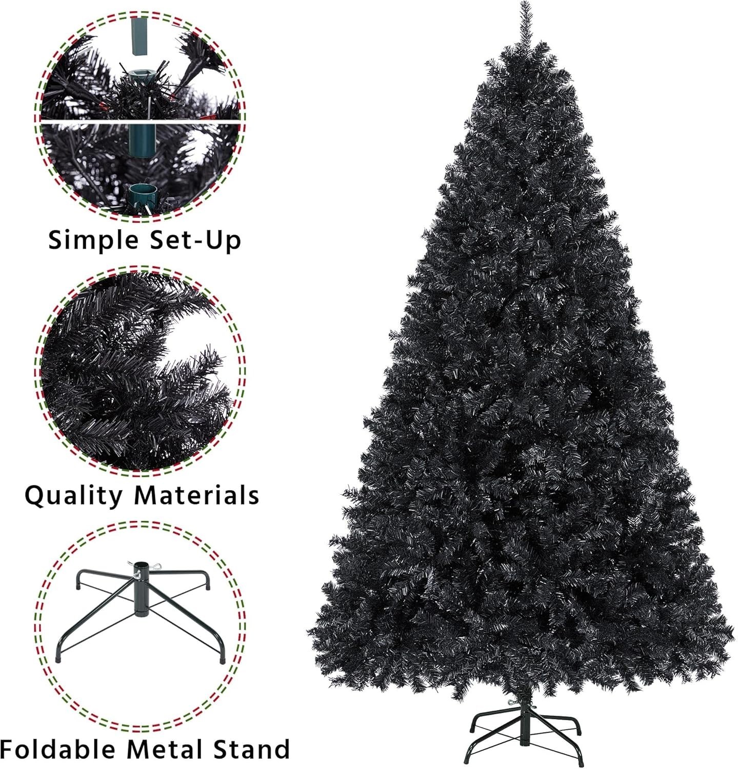 6ft Black Artificial Christmas Pine Tree Seasonal Holiday Carnival Home Party...