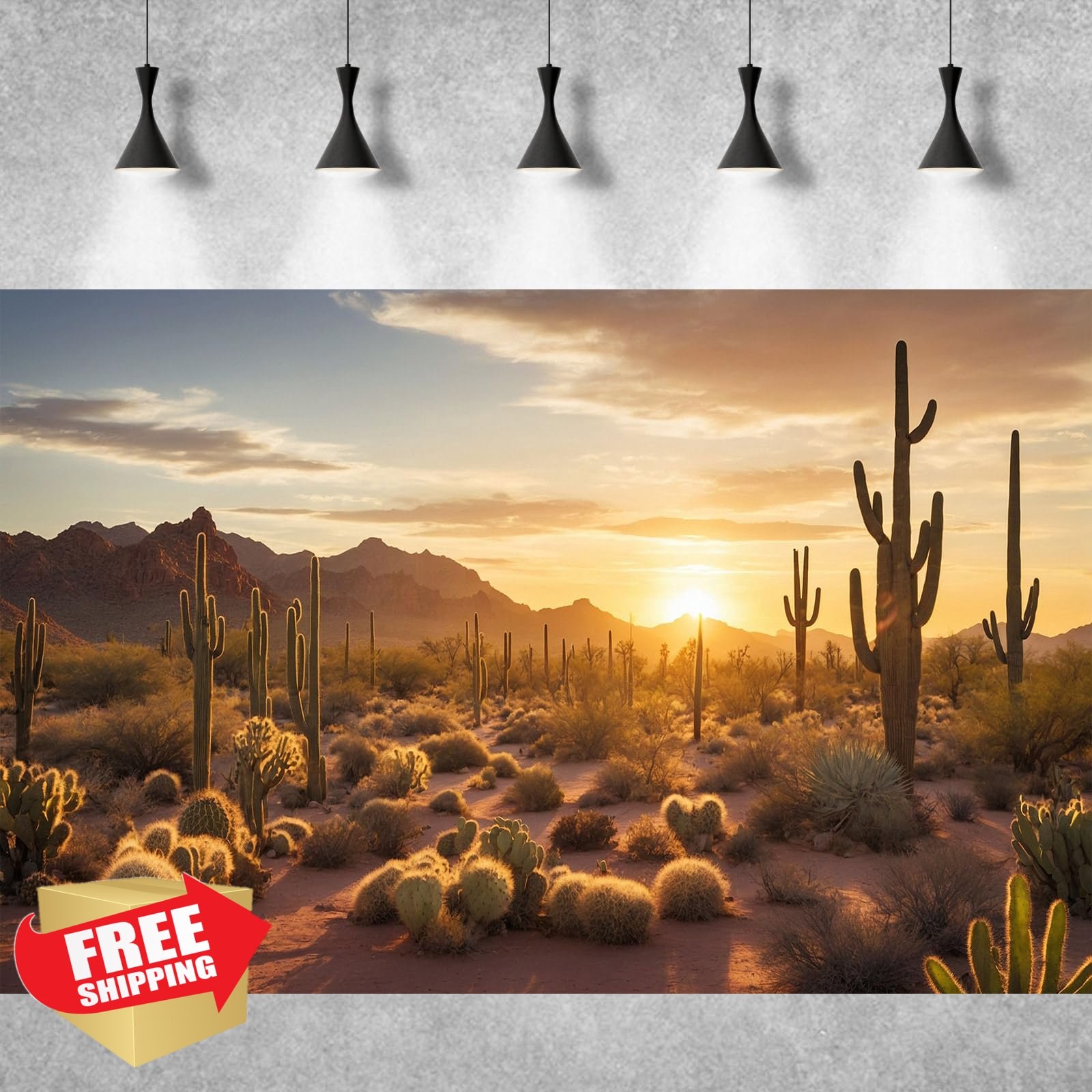 Sunset Desert Reptile Habitat Background 36x18in Saguaro