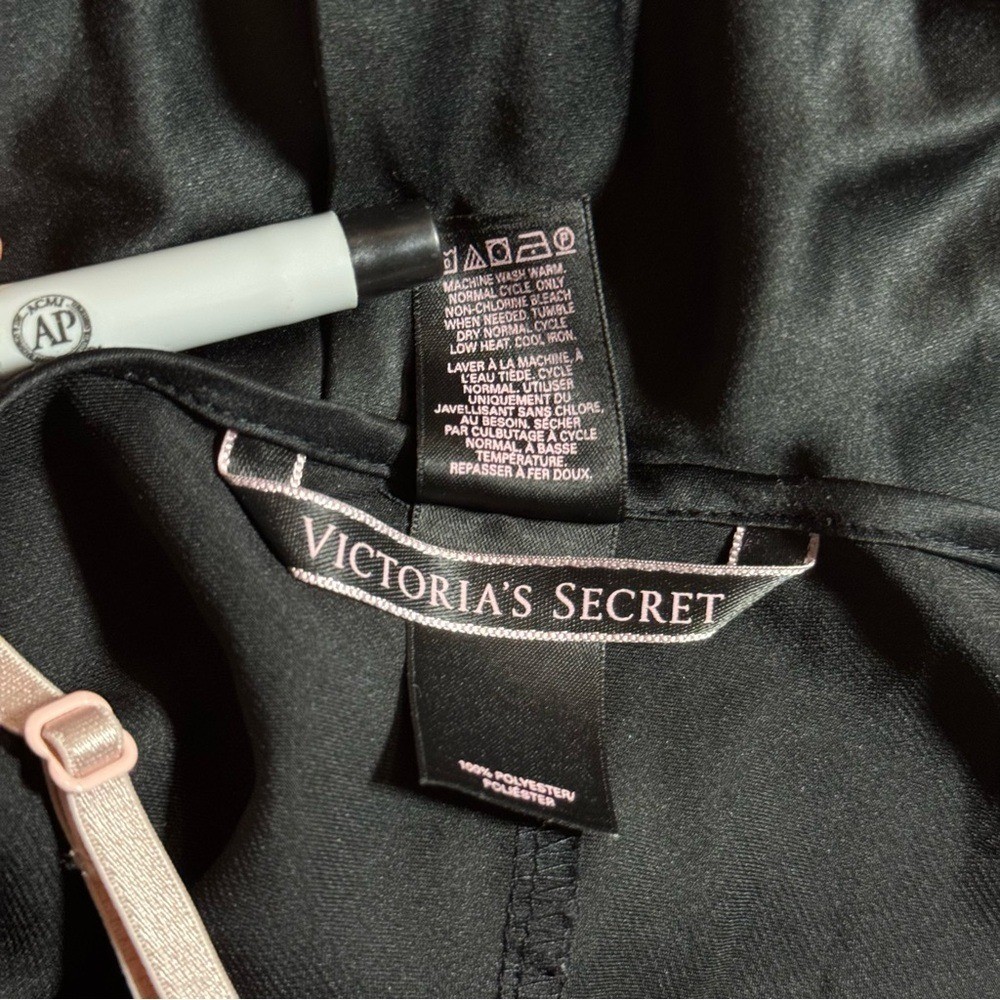 как выглядит Victorias Secret Black Pink Chemise Slip Dress Size Small фото