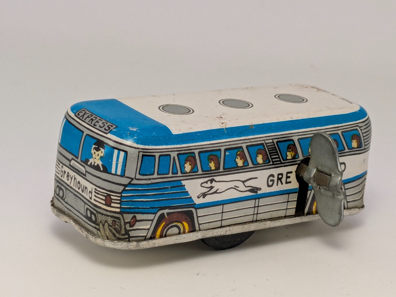 Vintage 1950s Tin Litho Key Wind-Up Greyhound Express Bus Japan