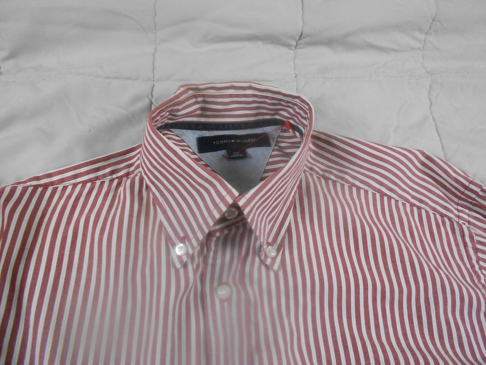 Tommy Hilfiger Shirt Men s Small Red White Striped Long Sleeve Button-Up