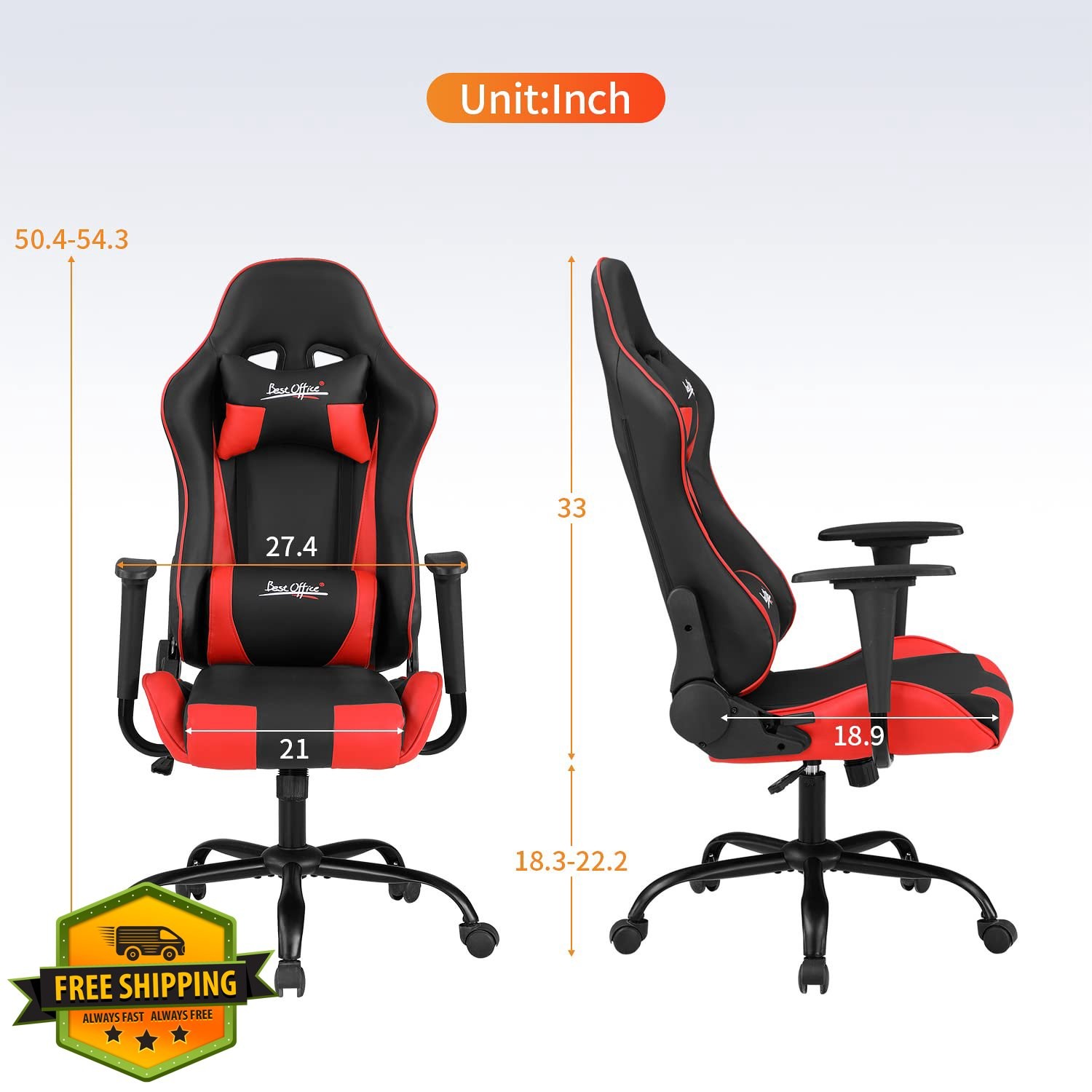 Gaming Chair Office Chair Red, Lumbar Support Headrest Swivel