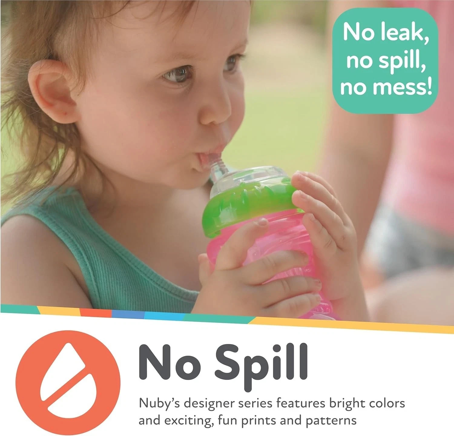 Nuby No-Spill Sippy Cup with Flex Straw - 3-Pack 10-Ounce Bottles - Sippy Cups
