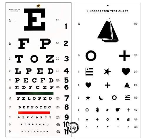 Premium Kindergarten Snellen Wall Eye Charts Set - 22x11 Combo Pack