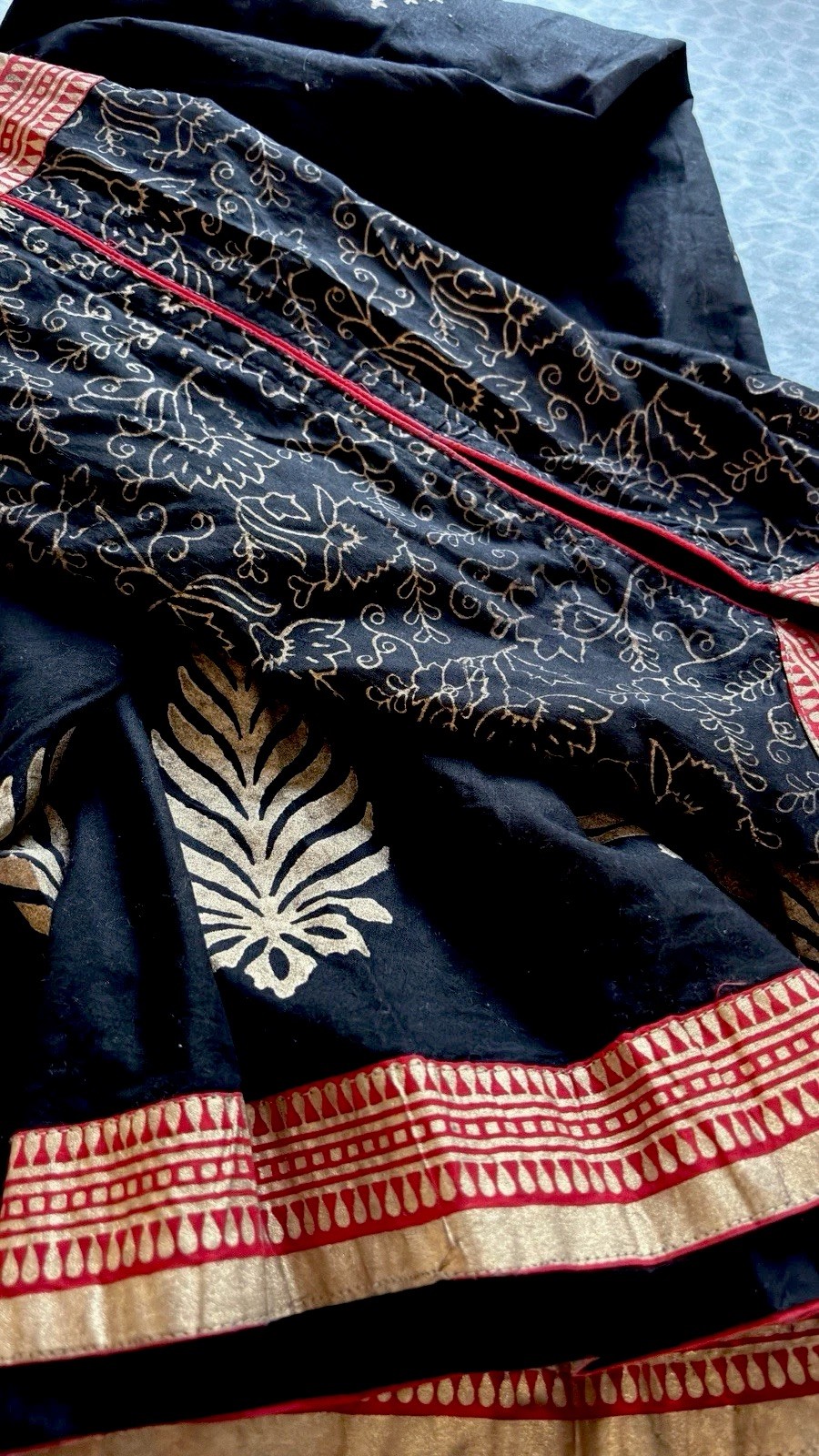 Stylish Ethnic Long Kurti for Women Black,Red with Gold Print 50 Inches