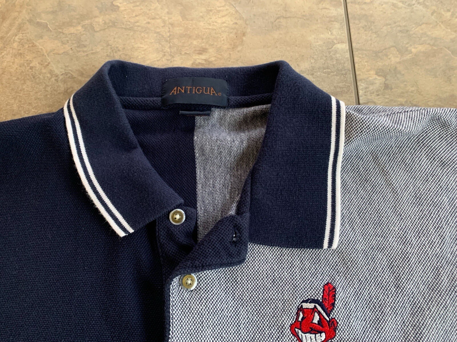 Vintage Antiqua Men s XL Cleveland Indians Chief Wahoo Polo Colorblock Shirt
