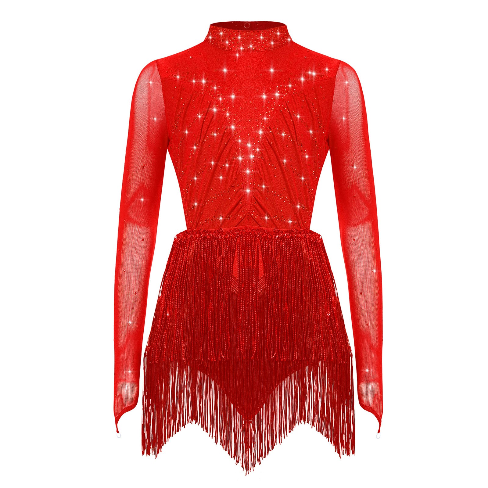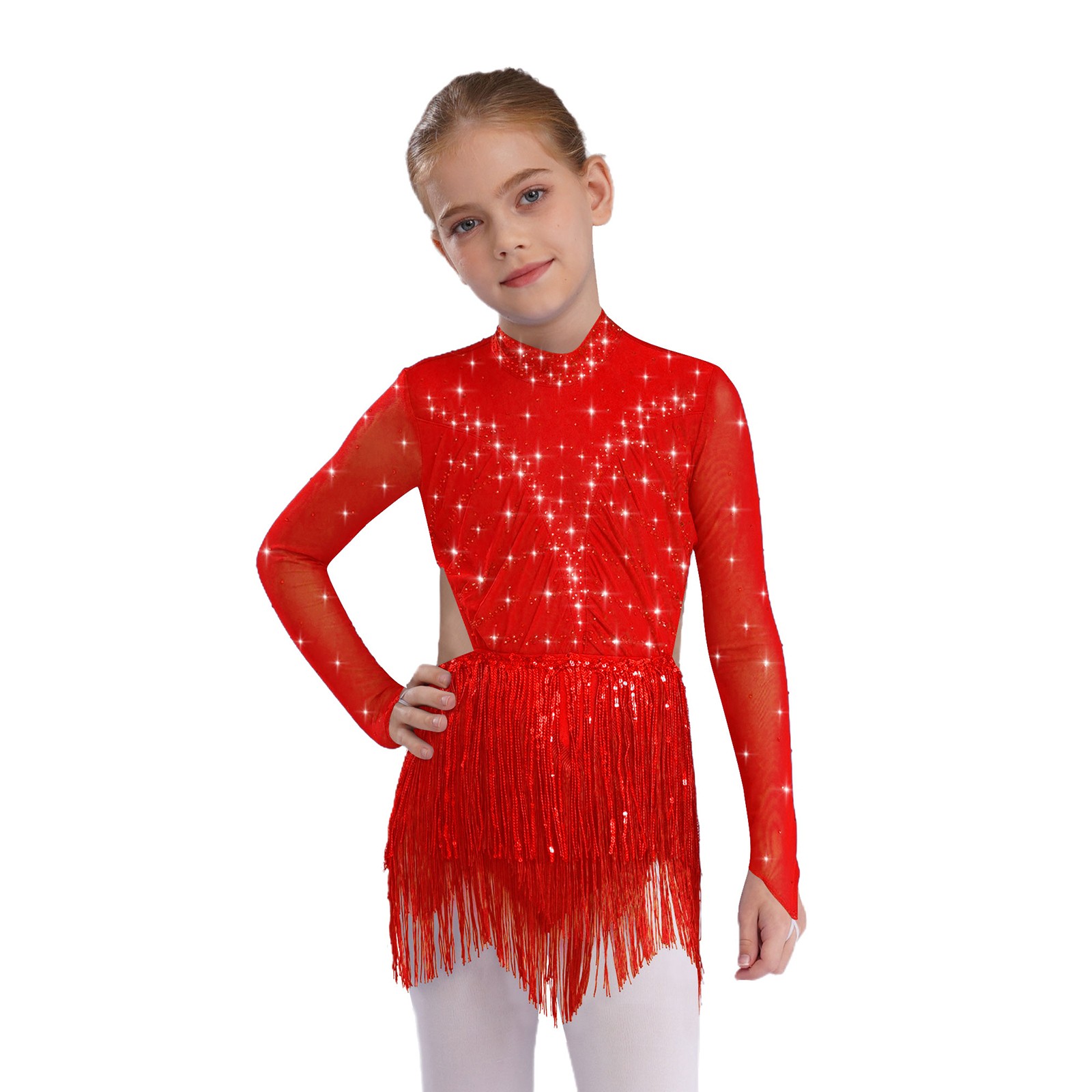 Girls Dress Leotard Dancewear Cha Cha Ballroom Show Skirt Prom Long Sleeve
