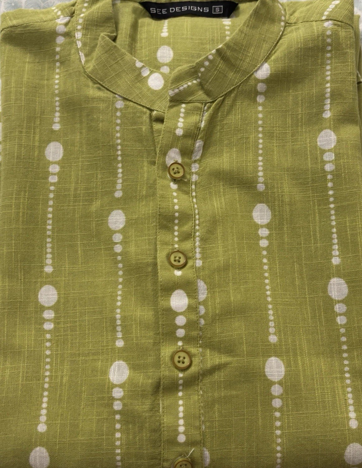 Men s Olive Green Cotton Kurta Pajama Set Size Small Festive/Ethnic Wear