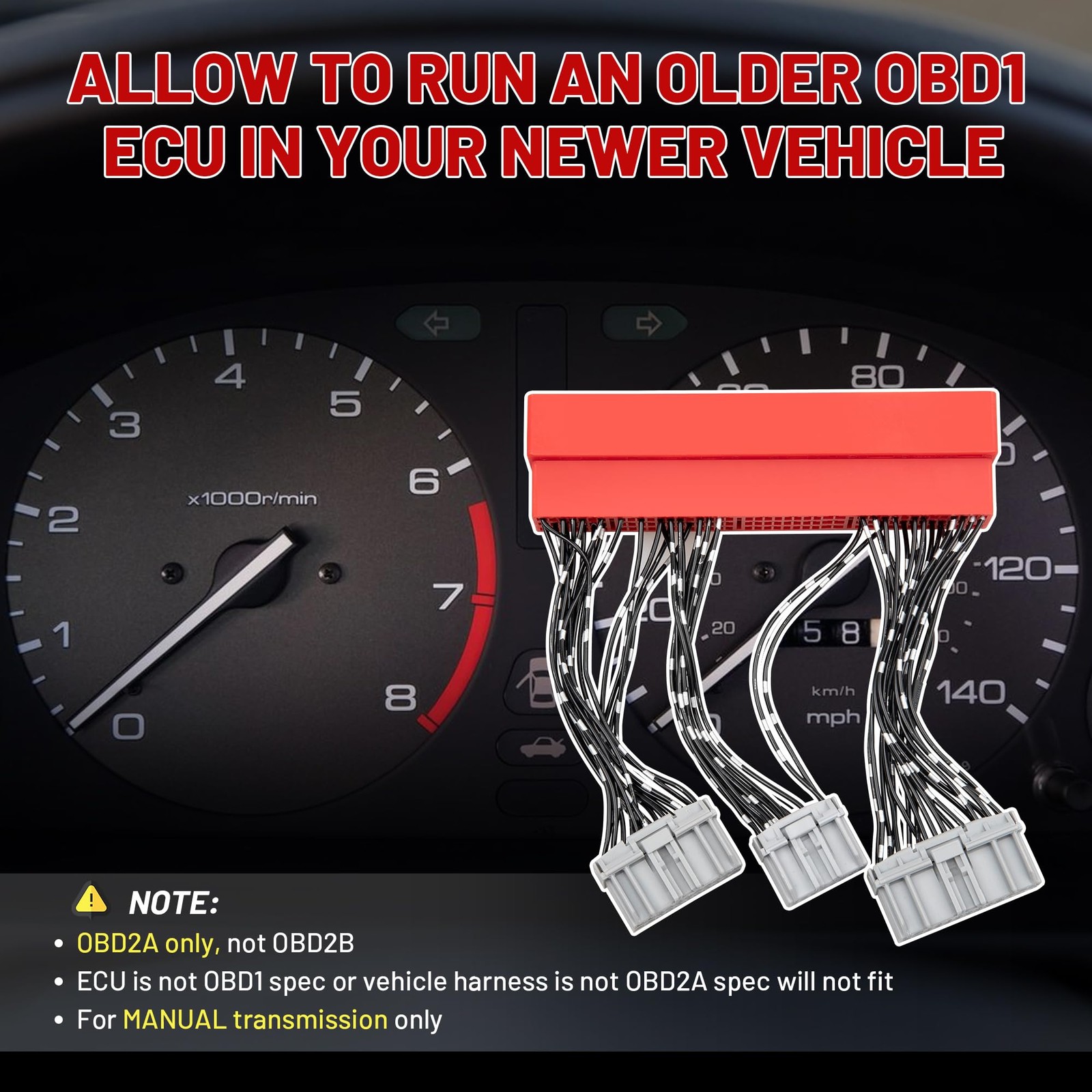OBD2A to OBD1 ECU Jumper Conversion Harness Adapter Compatible with 1996-1999...