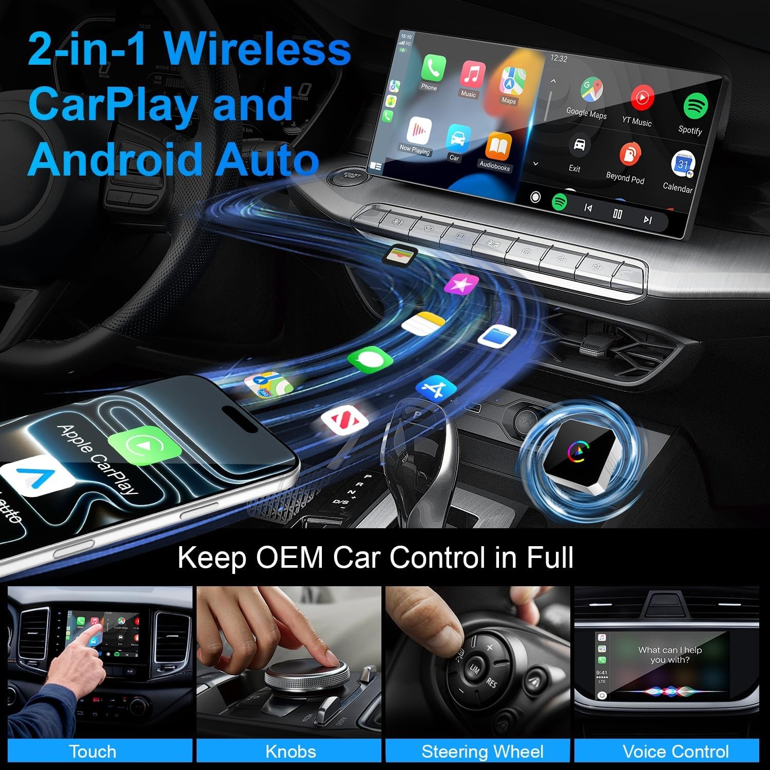 2026 Wireless CarPlay Android Auto Adapter Plug Play, Wired to Wireless