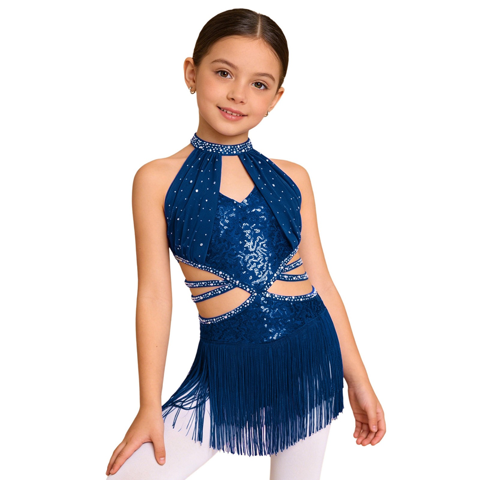 Kids Girls Costume Rave Dress Salsa Dancewear Halloween Latin Dance Strappy