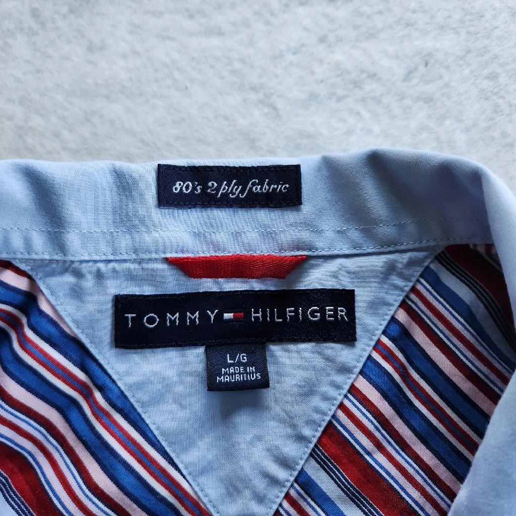 как выглядит Tommy Hilfiger Red/White/Blue Striped Button Up Men Long Sleeve Shirt Size L фото