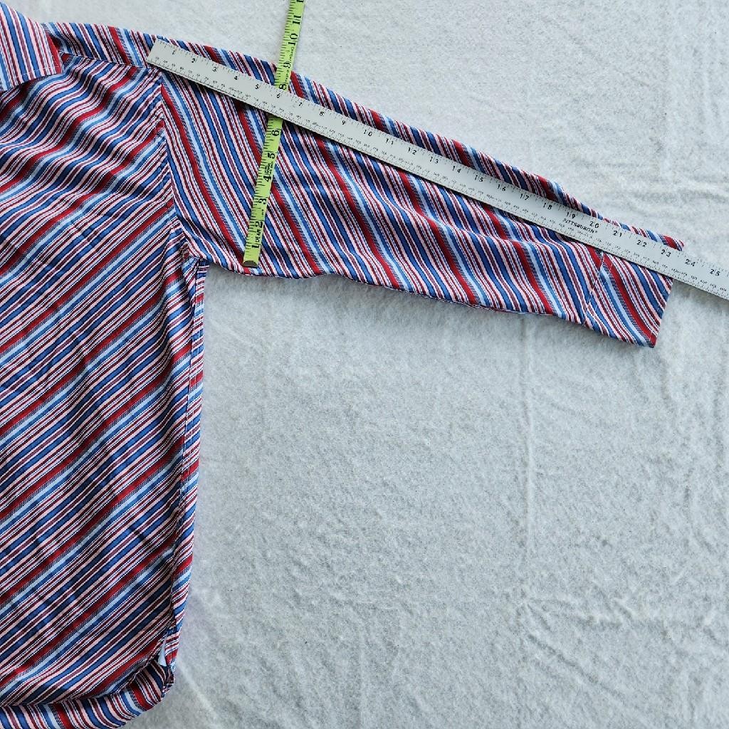 Tommy Hilfiger Red/White/Blue Striped Button Up Men Long Sleeve Shirt Size L