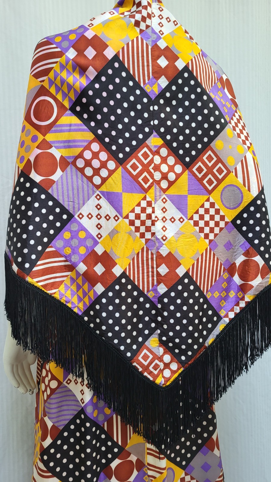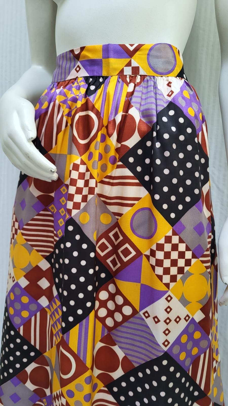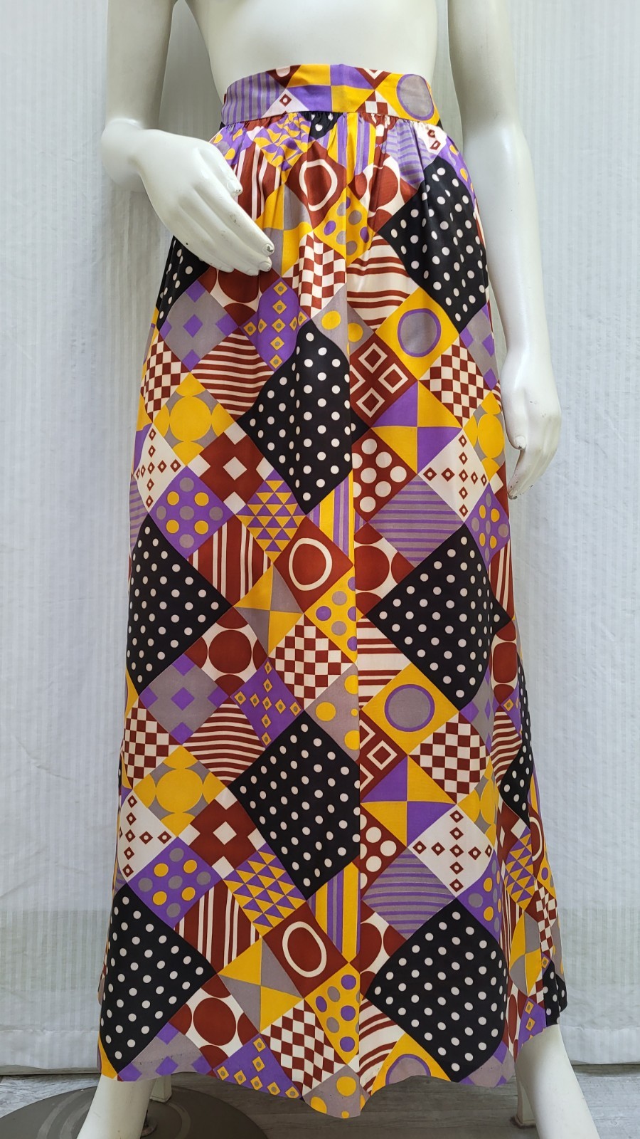 Vintage 1960's Mod Geo Dot Print Maxi Skirt Fringed Shawl - Waist 27 - EUC