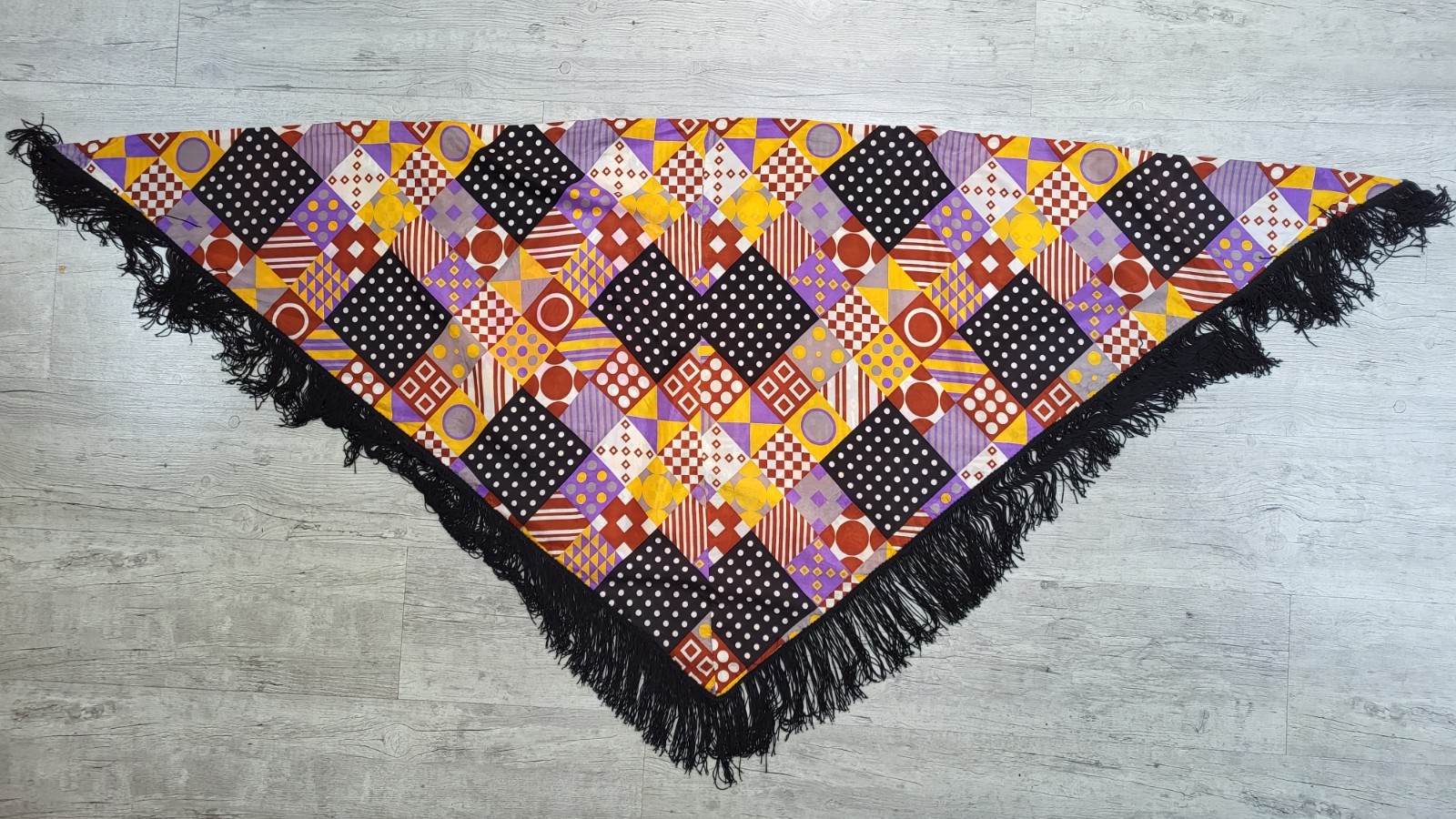 как выглядит Vintage 1960s Mod Geo Dot Print Maxi Skirt Fringed Shawl - Waist 27" - EUC фото
