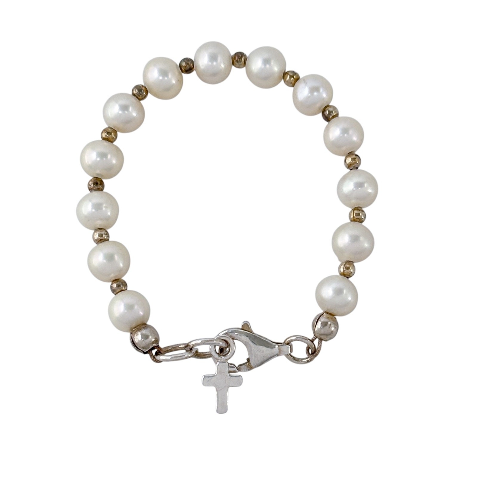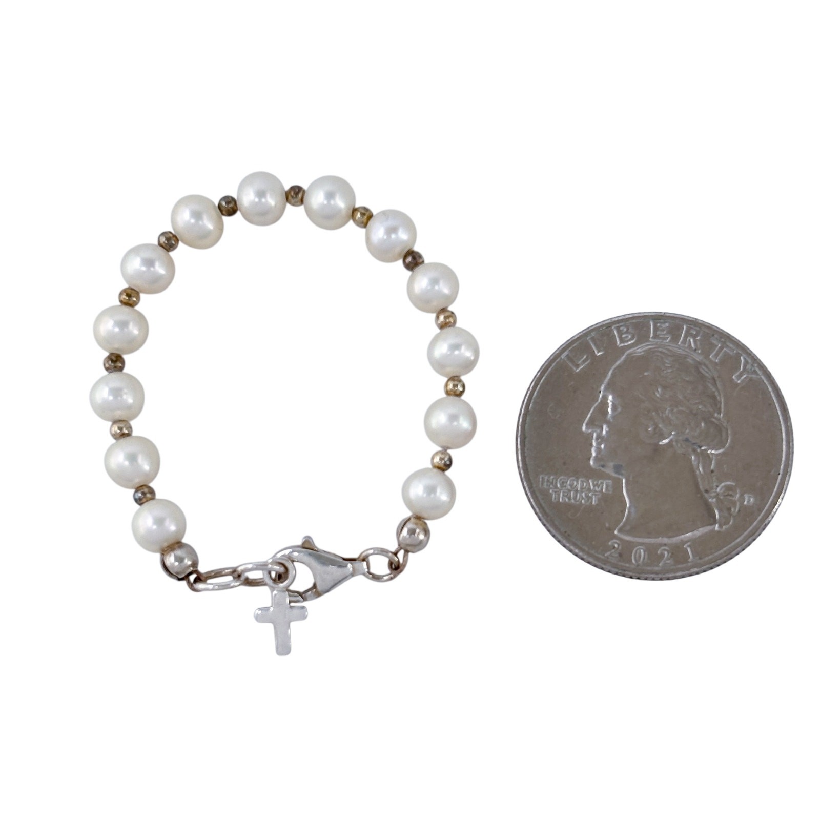Estate Sterling Silver 925 Pearl Baby Christening Bracelet 4