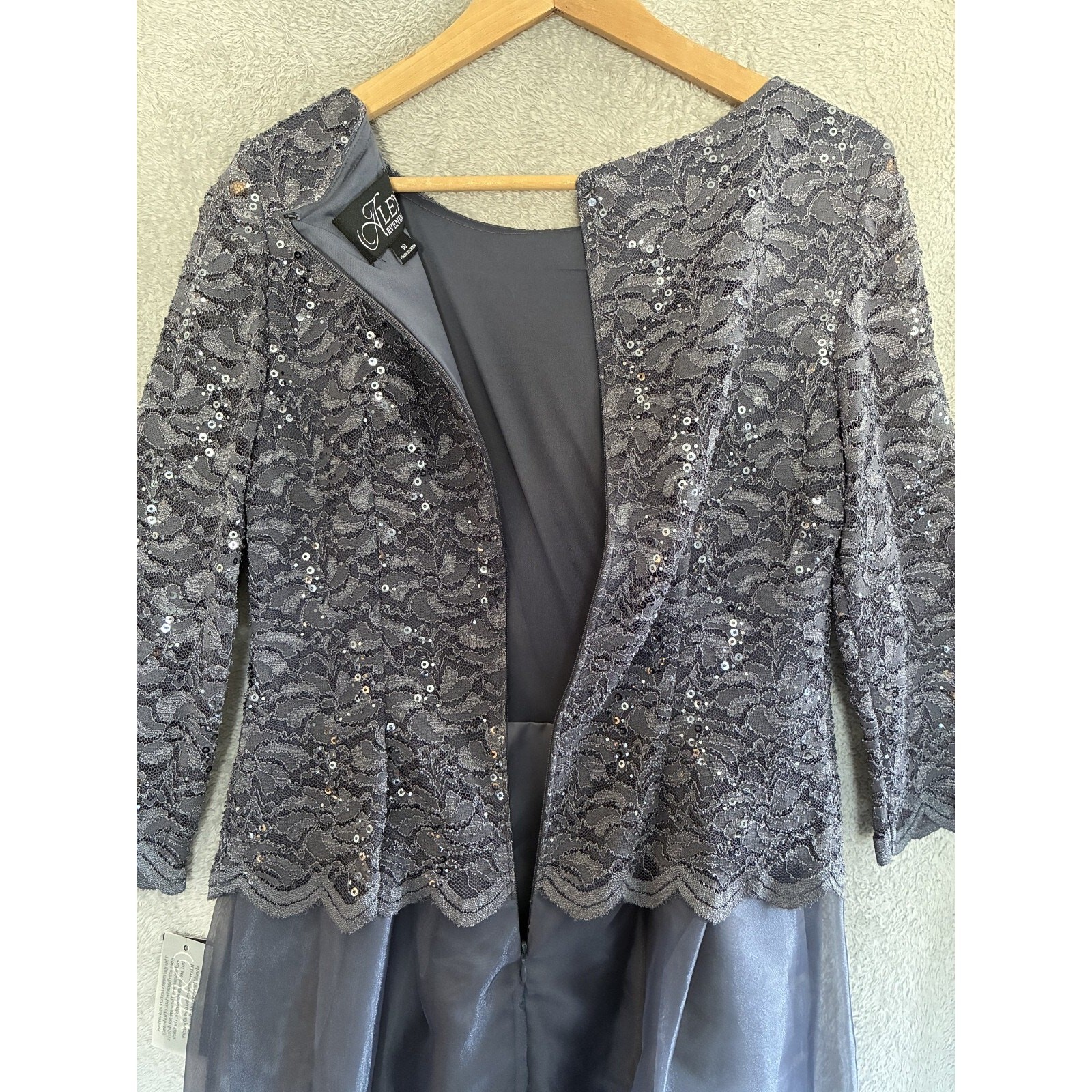 как выглядит NWT Alex Evenings Dress Navy 10 Formal Lace Organza Mother of the Bride фото