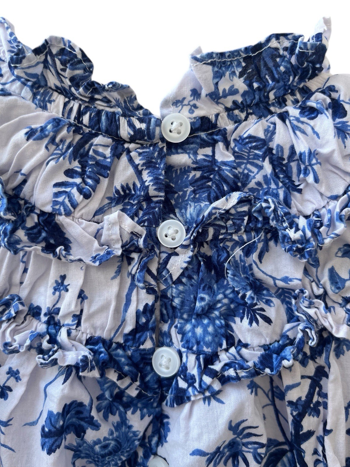 Janie And Jack Floral Toile Ruffle Dress Toddler Girl s Sz 3 Blue White Cotton