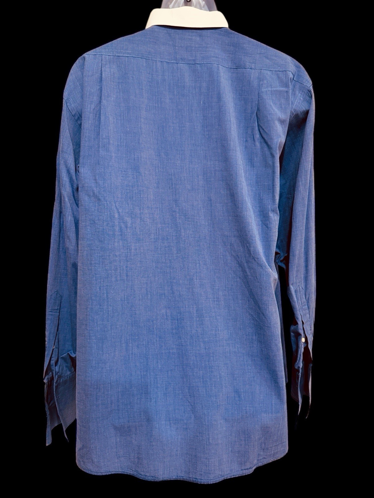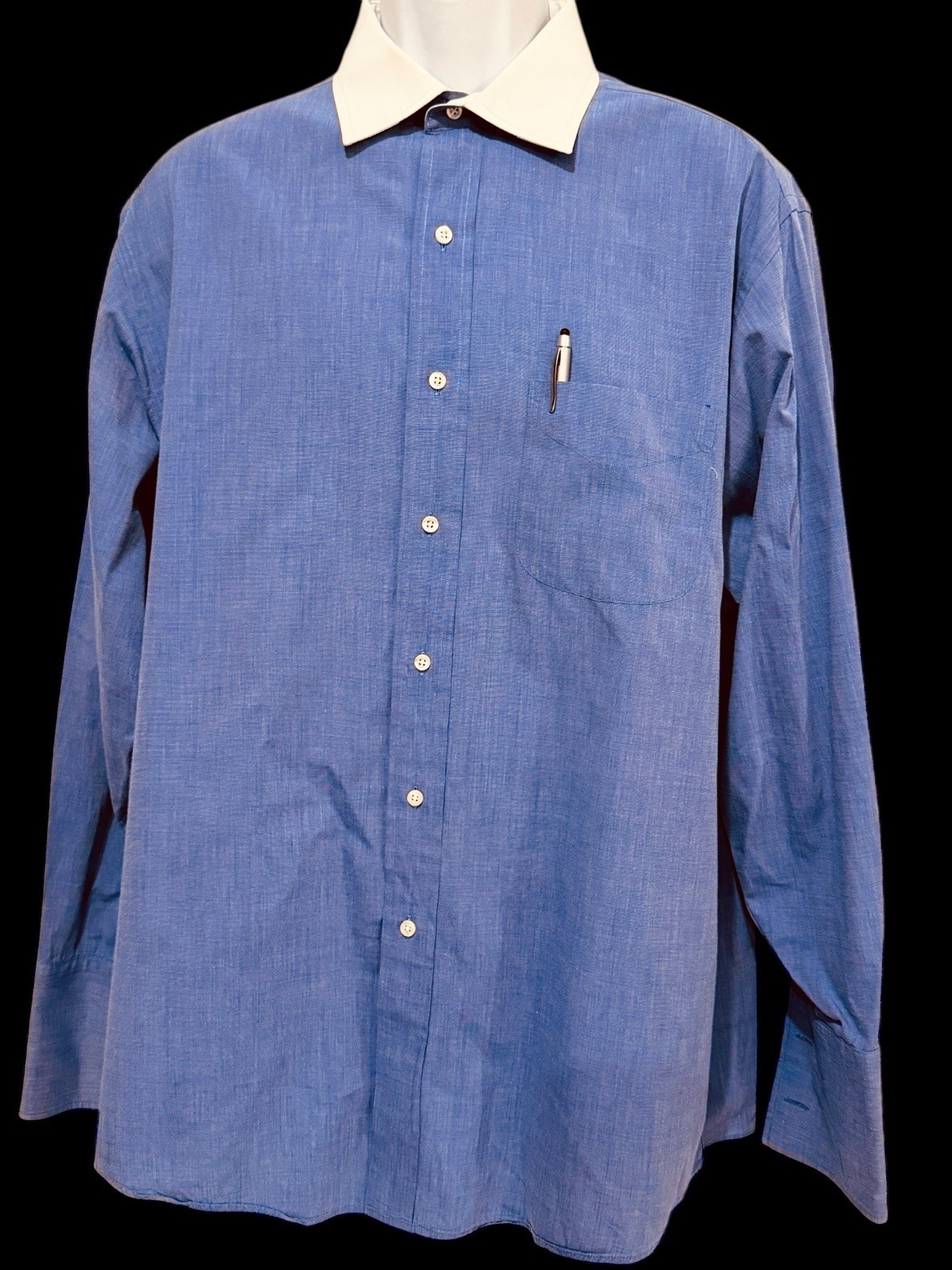 VTG Brooks Brothers Men Shirt 17 XXL Blue Contrast Collar French Cuff Cutaway