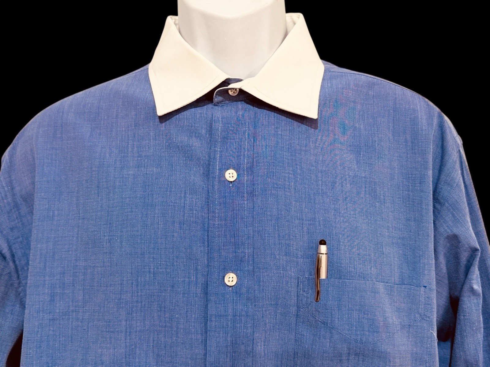 как выглядит VTG Brooks Brothers Men Shirt 17 XXL Blue Contrast Collar French Cuff Cutaway фото