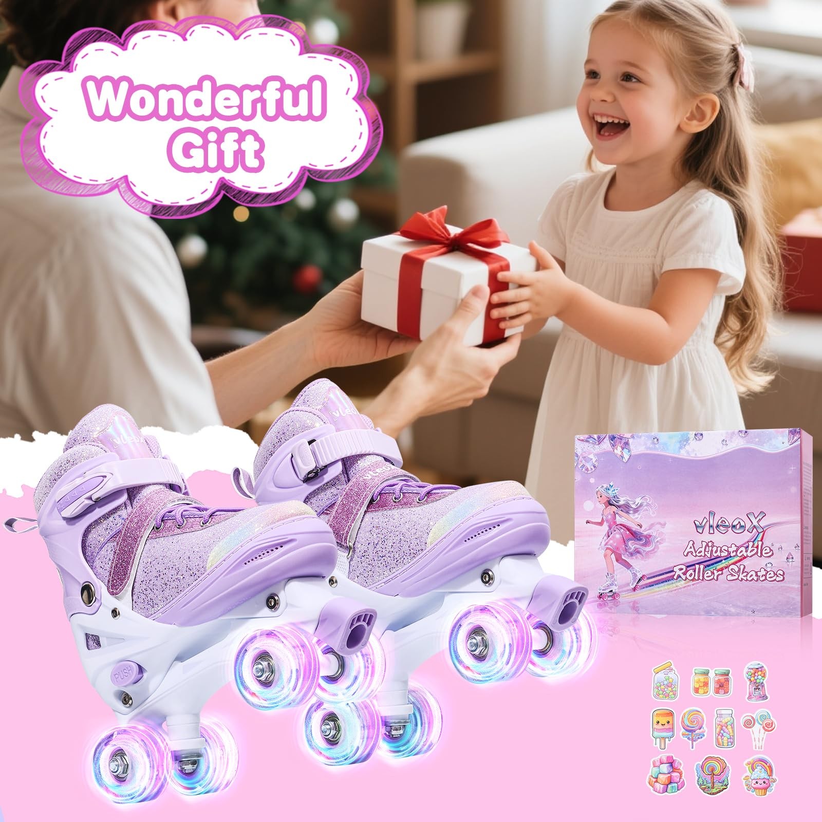 Roller Skates for Girls Kids Child Beginners, 4 Size Adjustable Light up Whee...