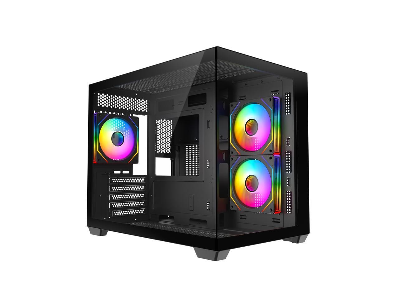 DIYPC ARGB-DC120-TM Black USB3.0 Tempered Glass Micro ATX Gaming Computer Case w