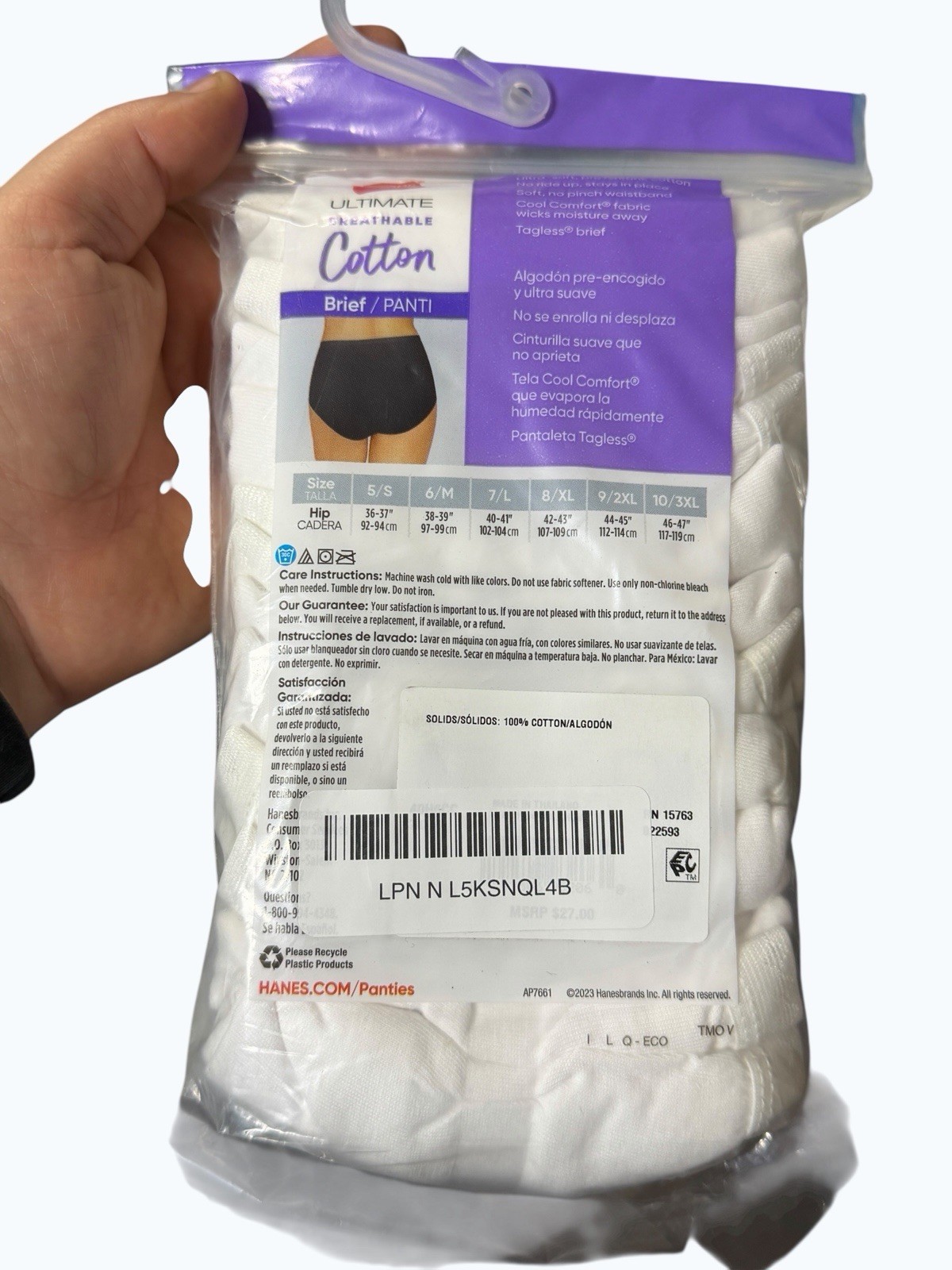 6 PACK Hanes Women's Ultimate Tagless Cotton Brief Panties White Size Large