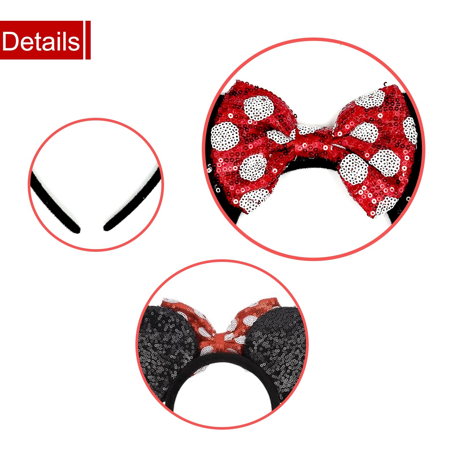как выглядит Mouse Ears Headband with Shiny Red Bow for Women, One Size Party Birthday фото