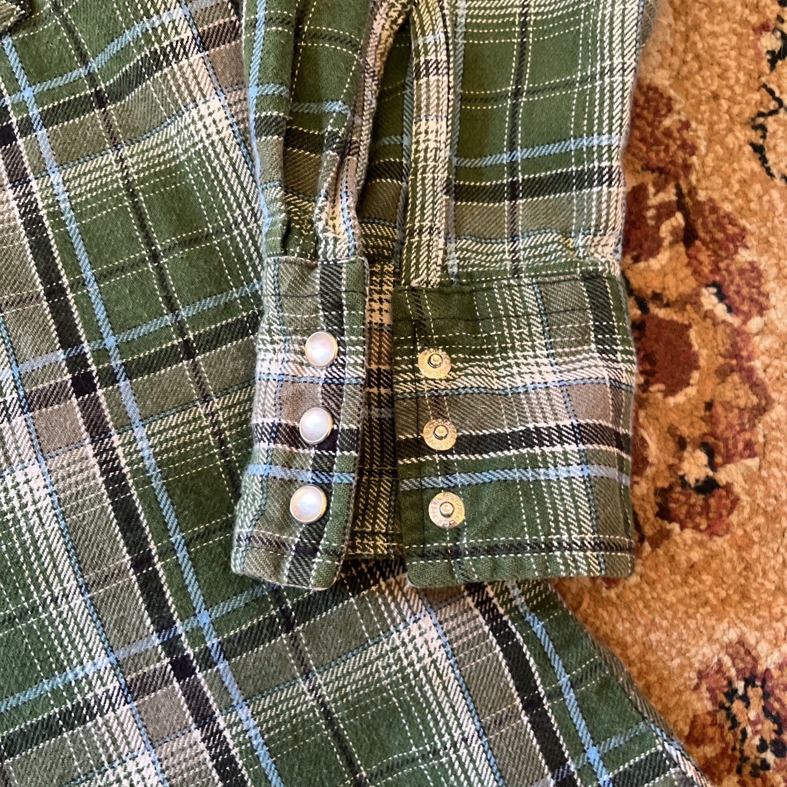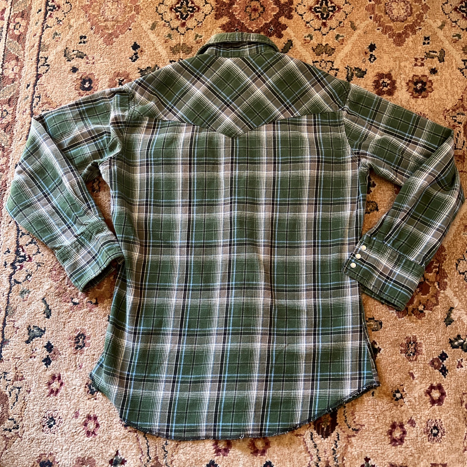 как выглядит VNT WRANGLER Wrancher Western Flannel Shirt Men M Green Plaid Pearl Snap Cowboy фото