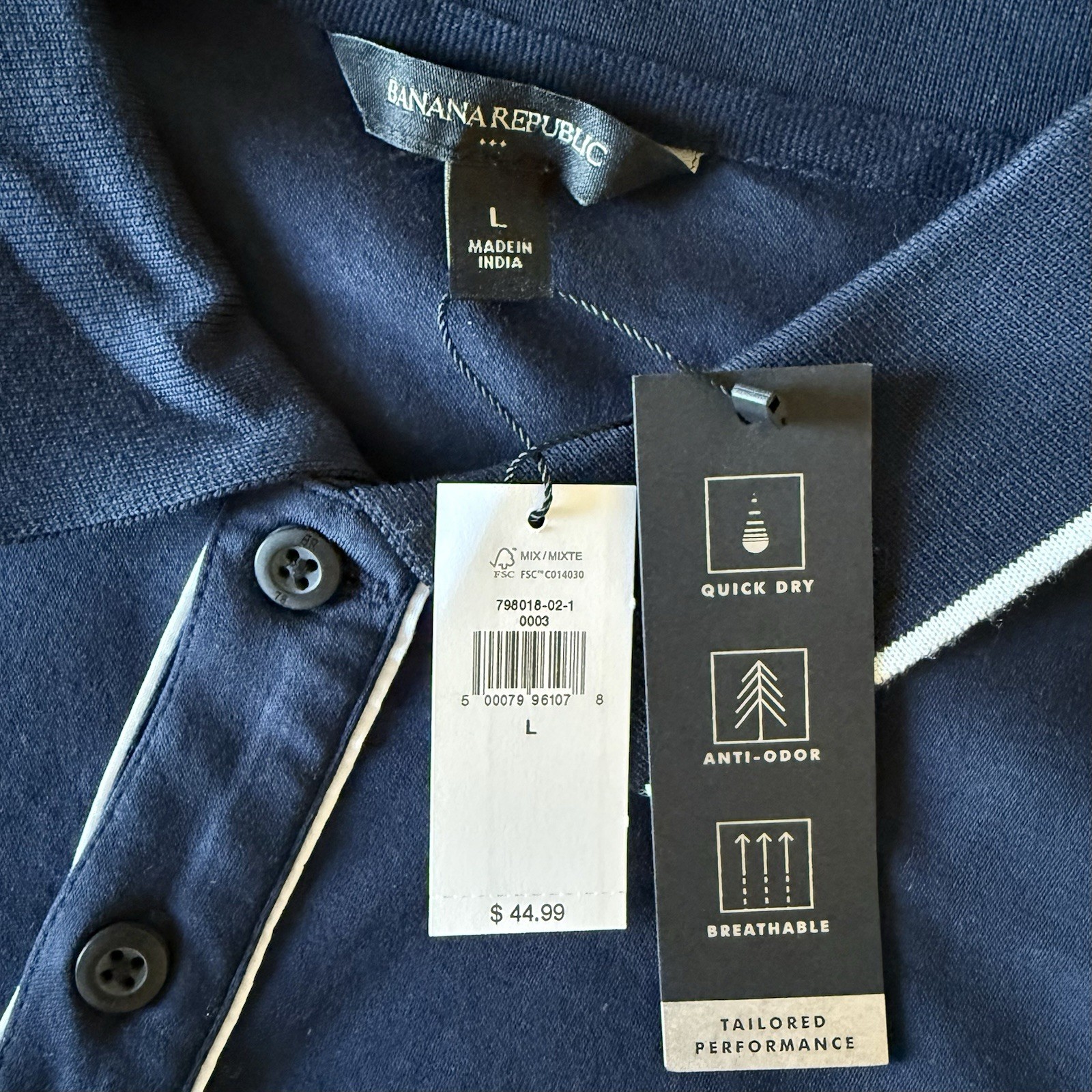 как выглядит Banana Republic Mens Luxe Touch Navy Polo Shirt L Tailored Fit 100 Cotton фото