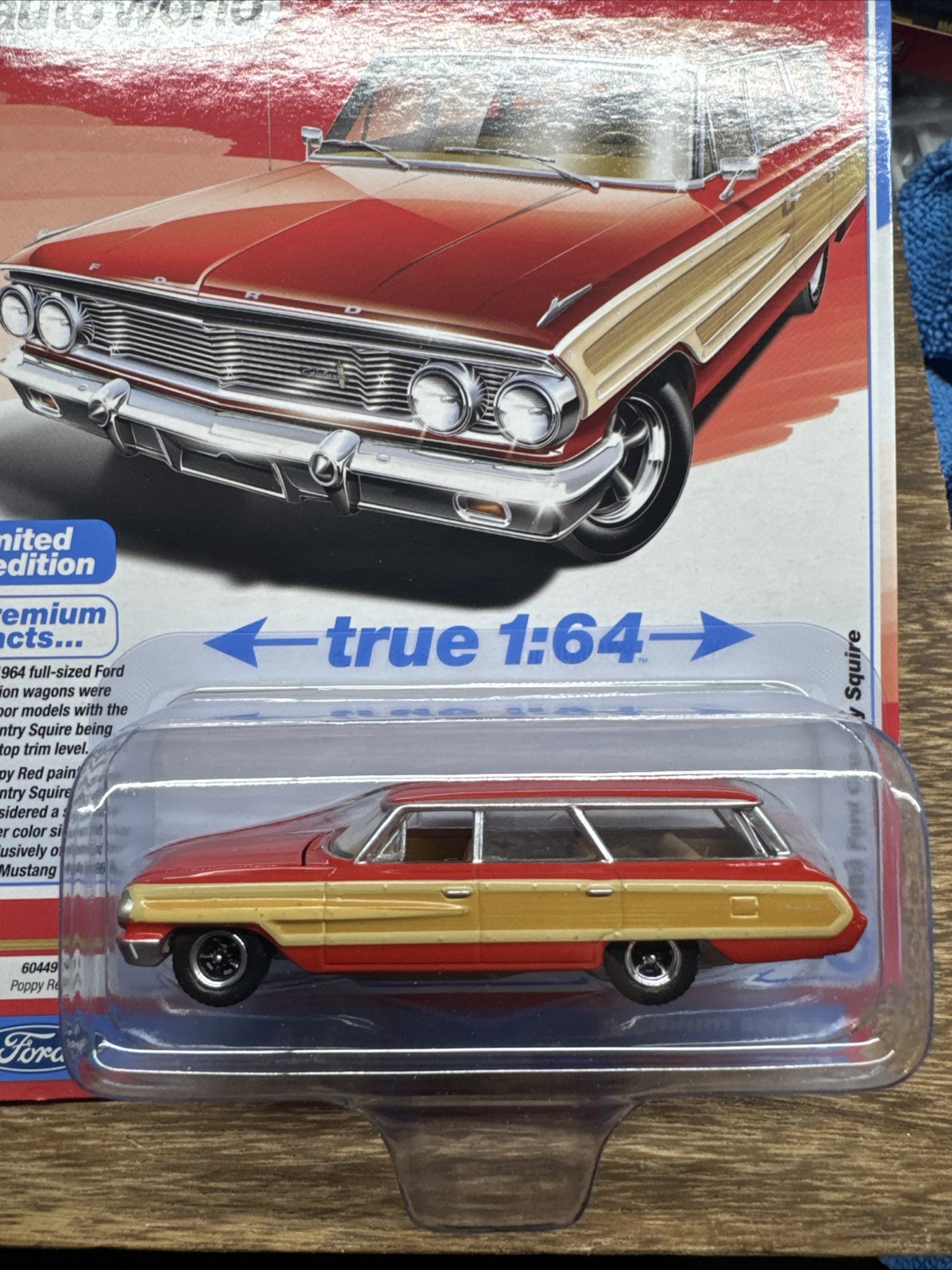 как выглядит 2026 AUTO WORLD 1964 FORD COUNTRY SQUIRE WAGON POPPY MUSCLE WAGONS R 3 VS B NO 4 фото