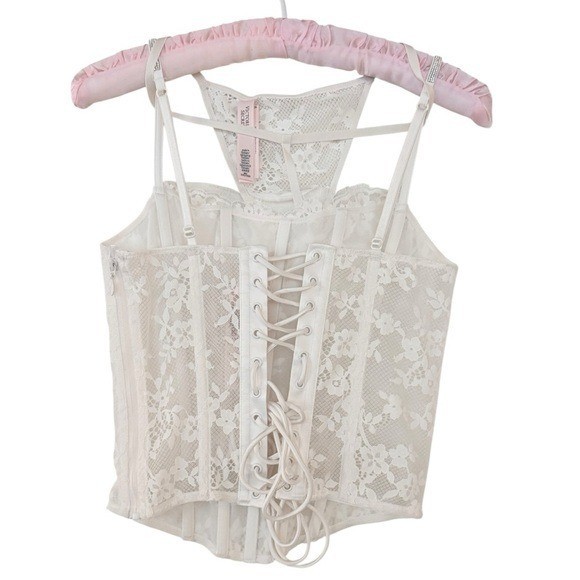 VICTORIA S SECRET Twinkle Strap Lace Corset Set White Size M NEW