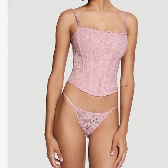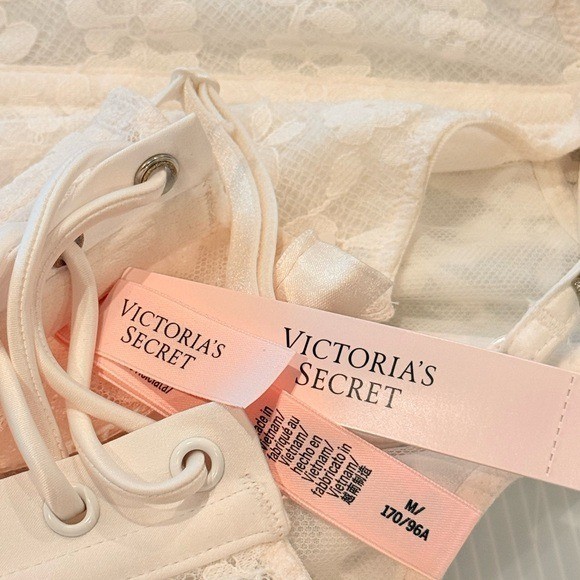 как выглядит VICTORIA S SECRET Twinkle Strap Lace Corset Set White Size M NEW фото