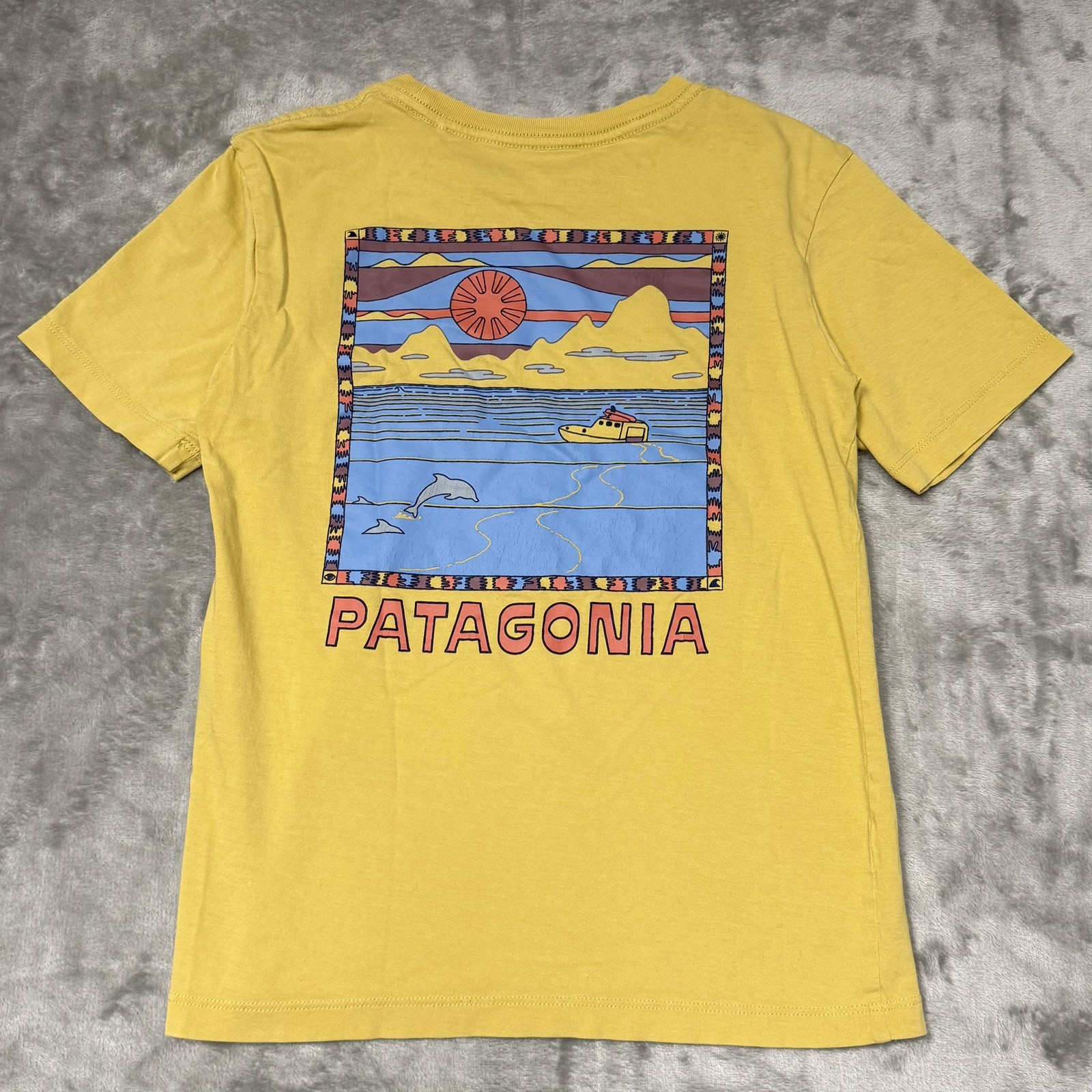 Patagonia Boys Size Small Yellow Cotton Graphic T Shirt