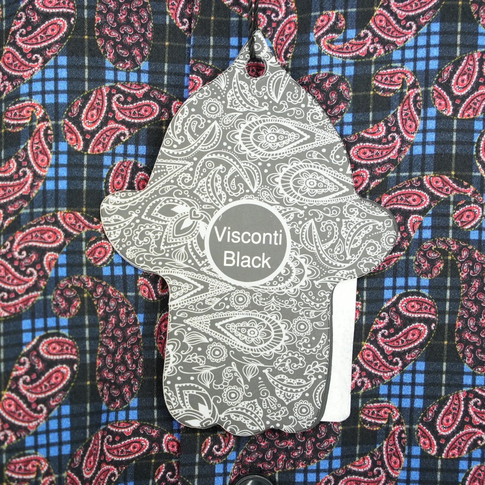 Visconti Black Men's Long Sleeve Shirt M Red Blue Black Geo Stretch NWT 135