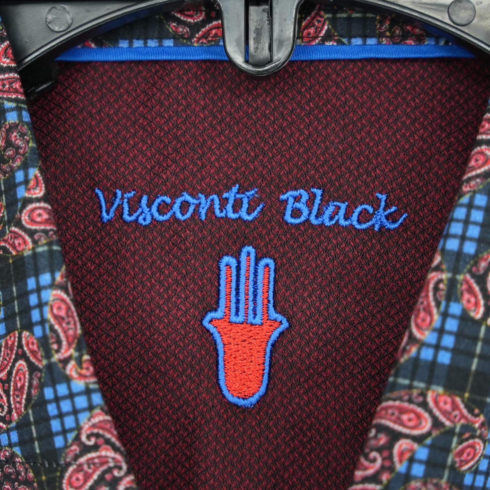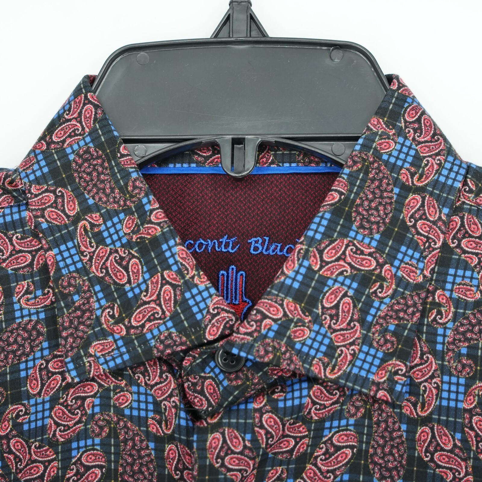 как выглядит Visconti Black Mens Long Sleeve Shirt M Red Blue Black Geo Stretch NWT 135 фото