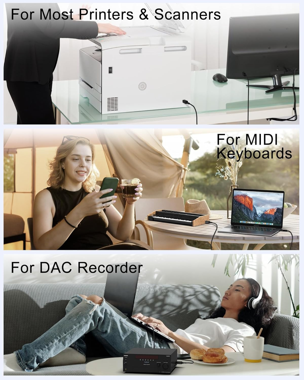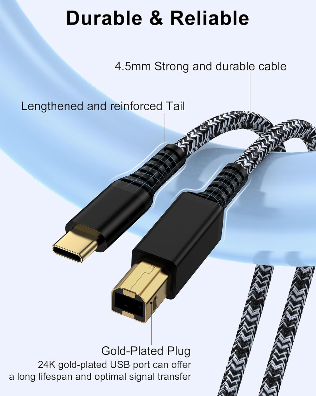 Special Feature: Braided, Data Transfer, Tangle Free, USB C 3.0 to USB B 2.0 Cable